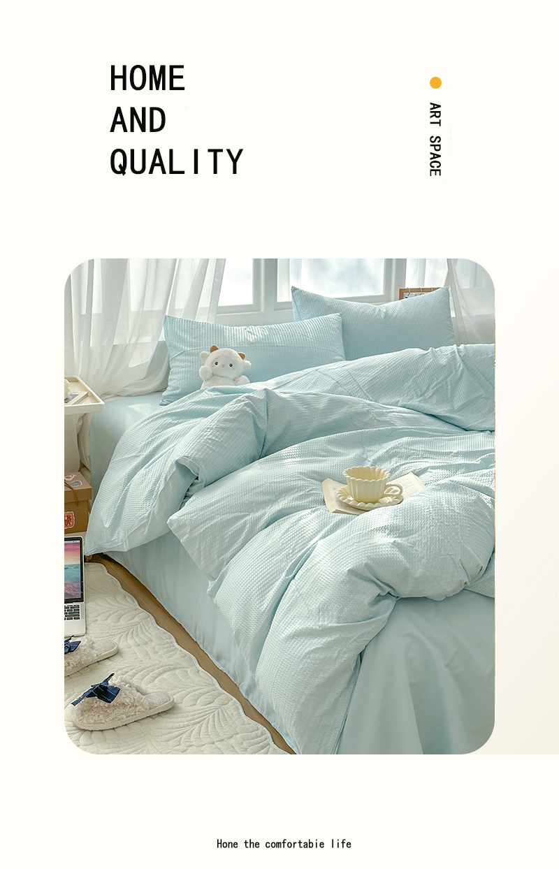 商品名称:啊雅家居 2025新款轻奢韩式无边款华夫格四件套 无边款-梦幻绿
