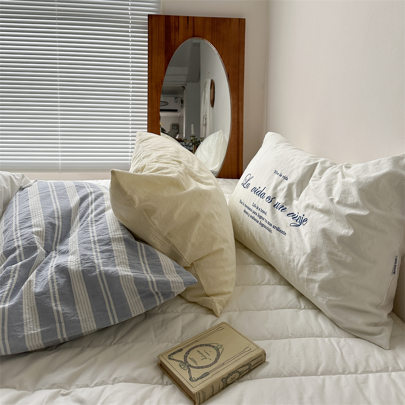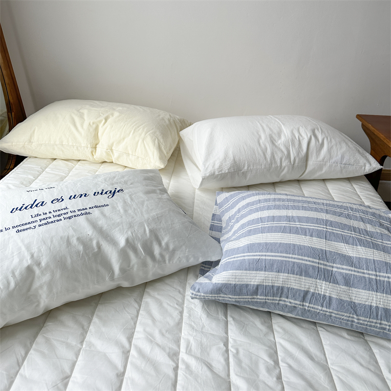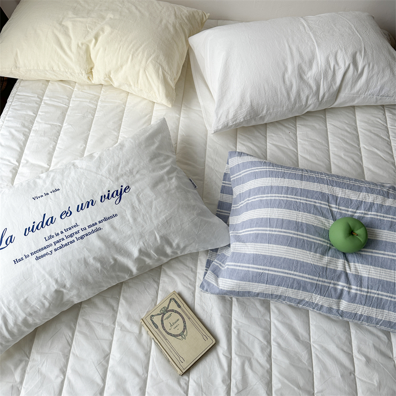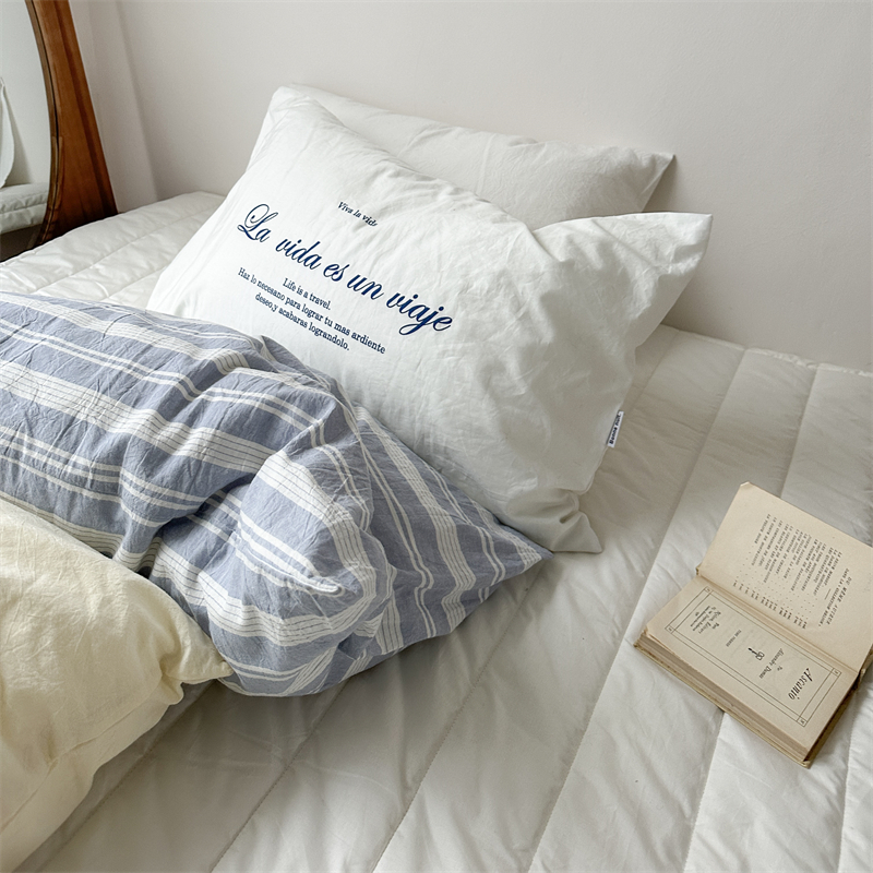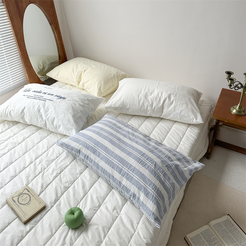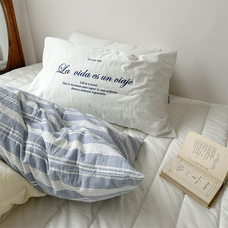 恋恋三季 2024新款色织水洗棉ins博主款四件套-北海道蓝条 单枕套 水洗棉 盐白