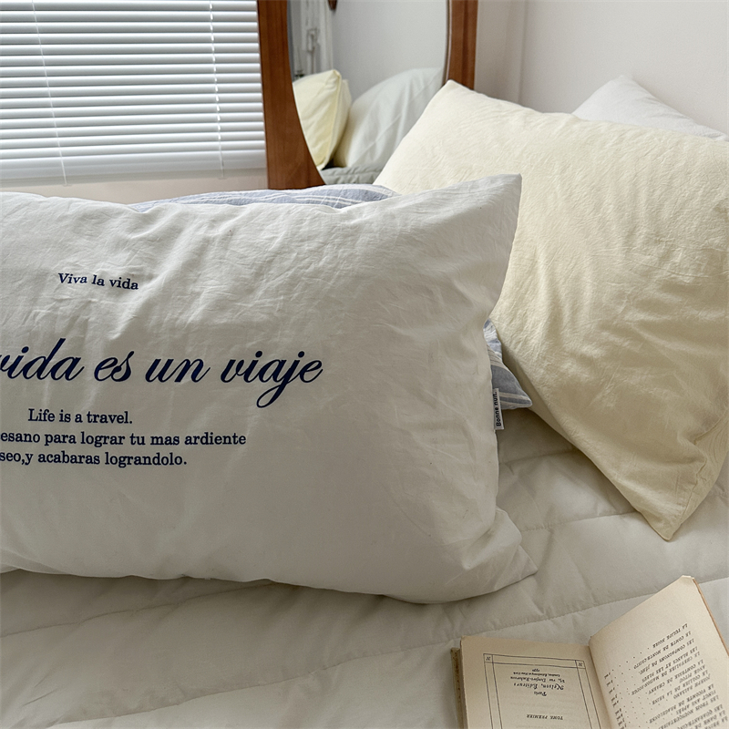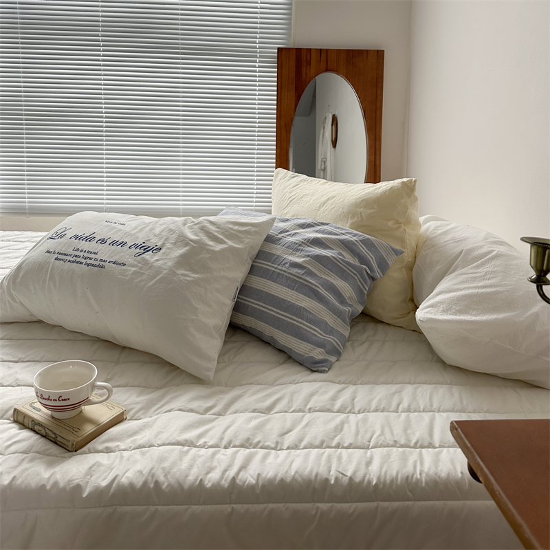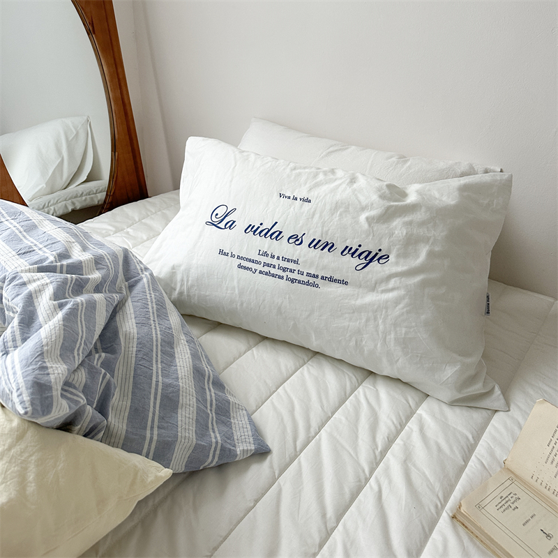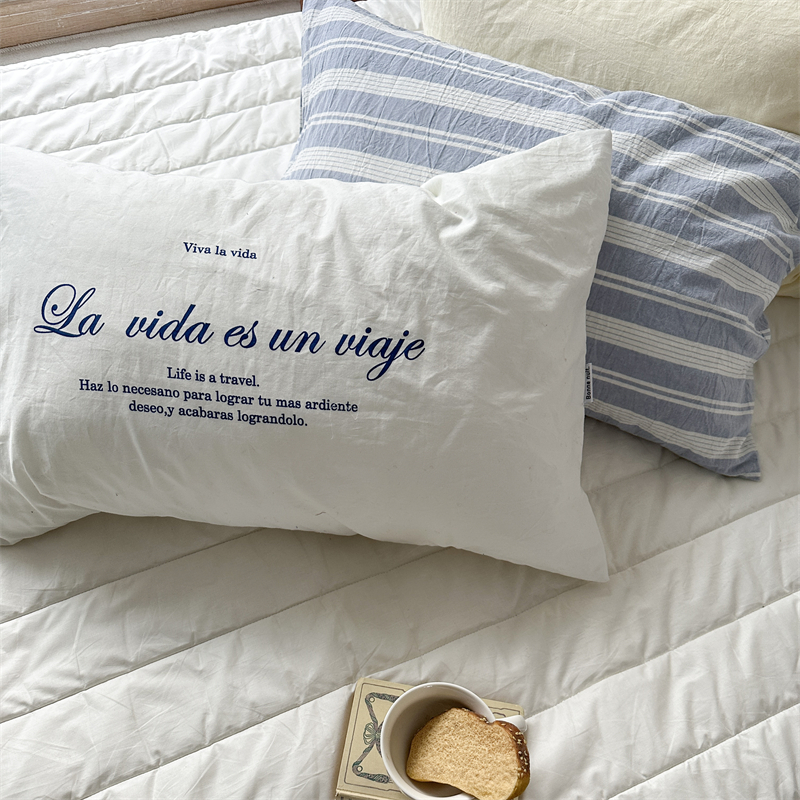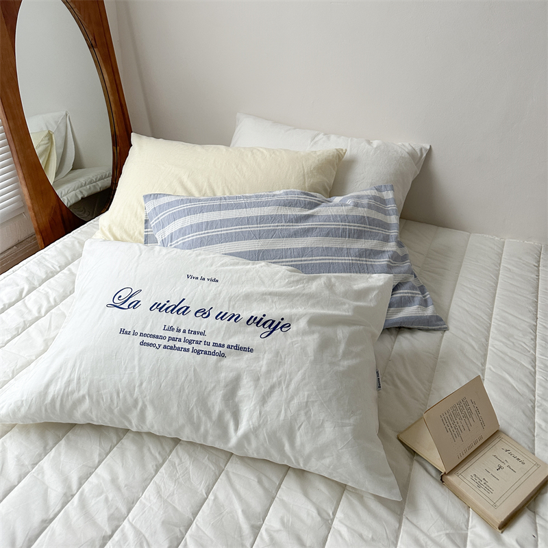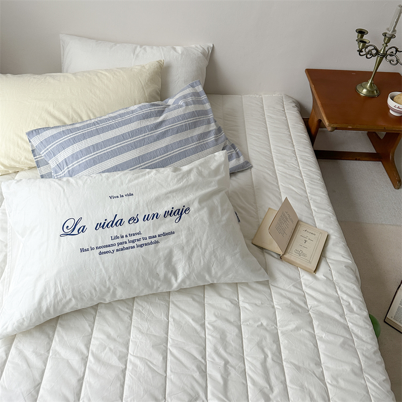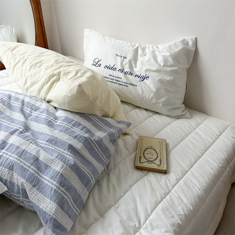 恋恋三季 2024新款色织水洗棉ins博主款四件套-北海道蓝条 单枕套 水洗棉 盐白