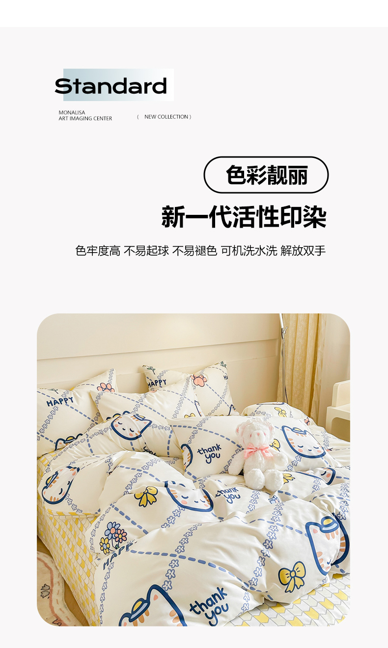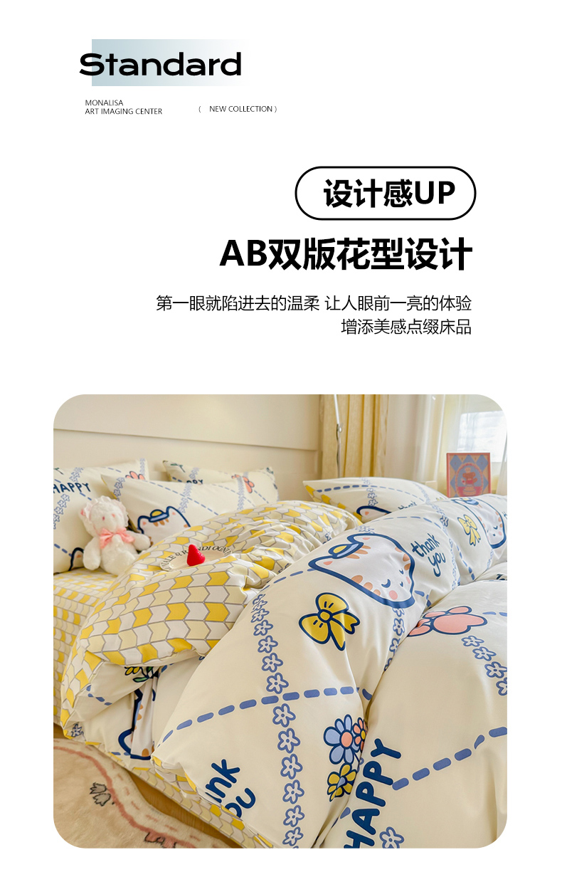 (总)呗旺鹿 2025新款卡通棉+牛奶绒四件套系列,QQ乐园,多彩笑脸,小萌鸭,蘑菇狗,奶油小熊,曲奇小熊