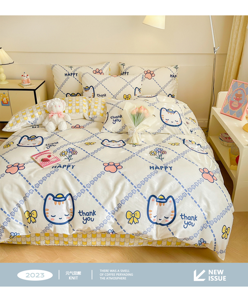 呗旺鹿 2024新款小清新全棉纯棉四件套小懒猫