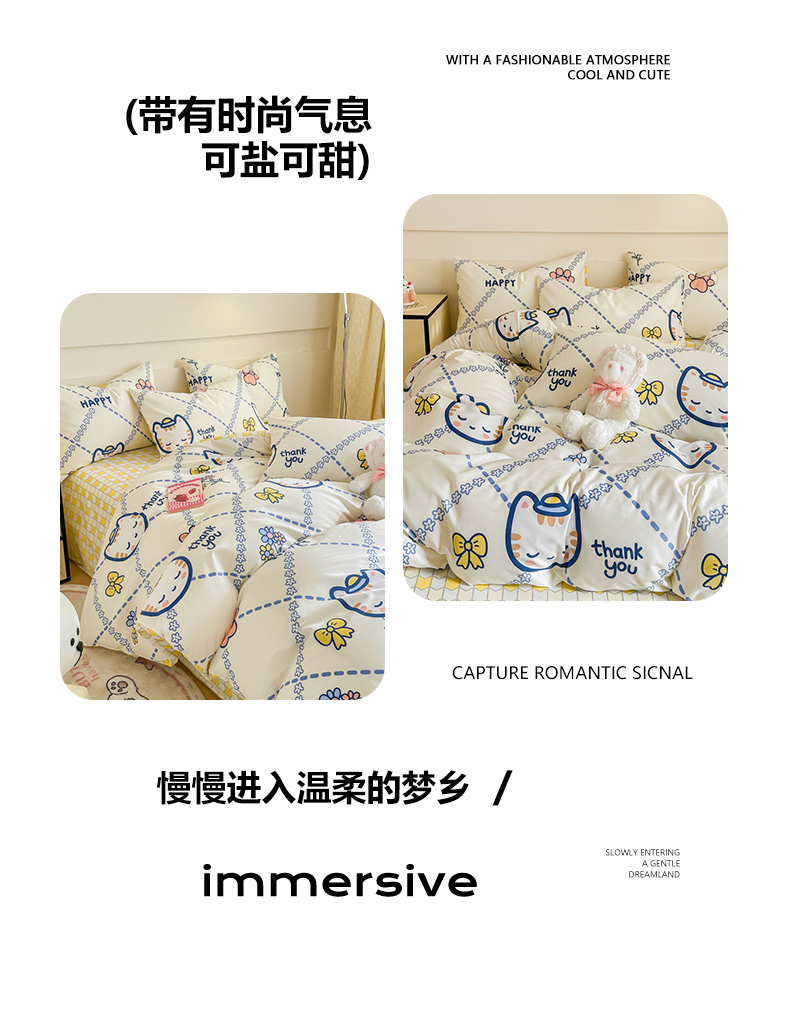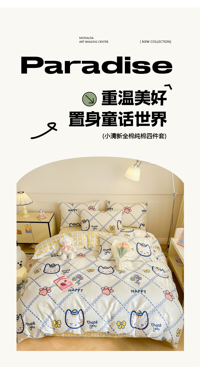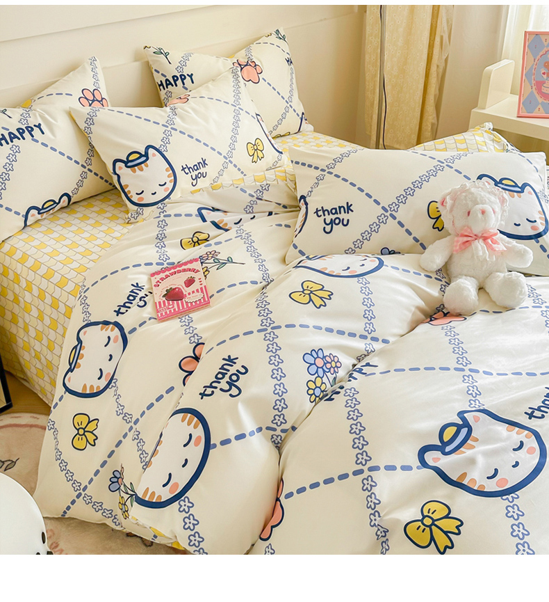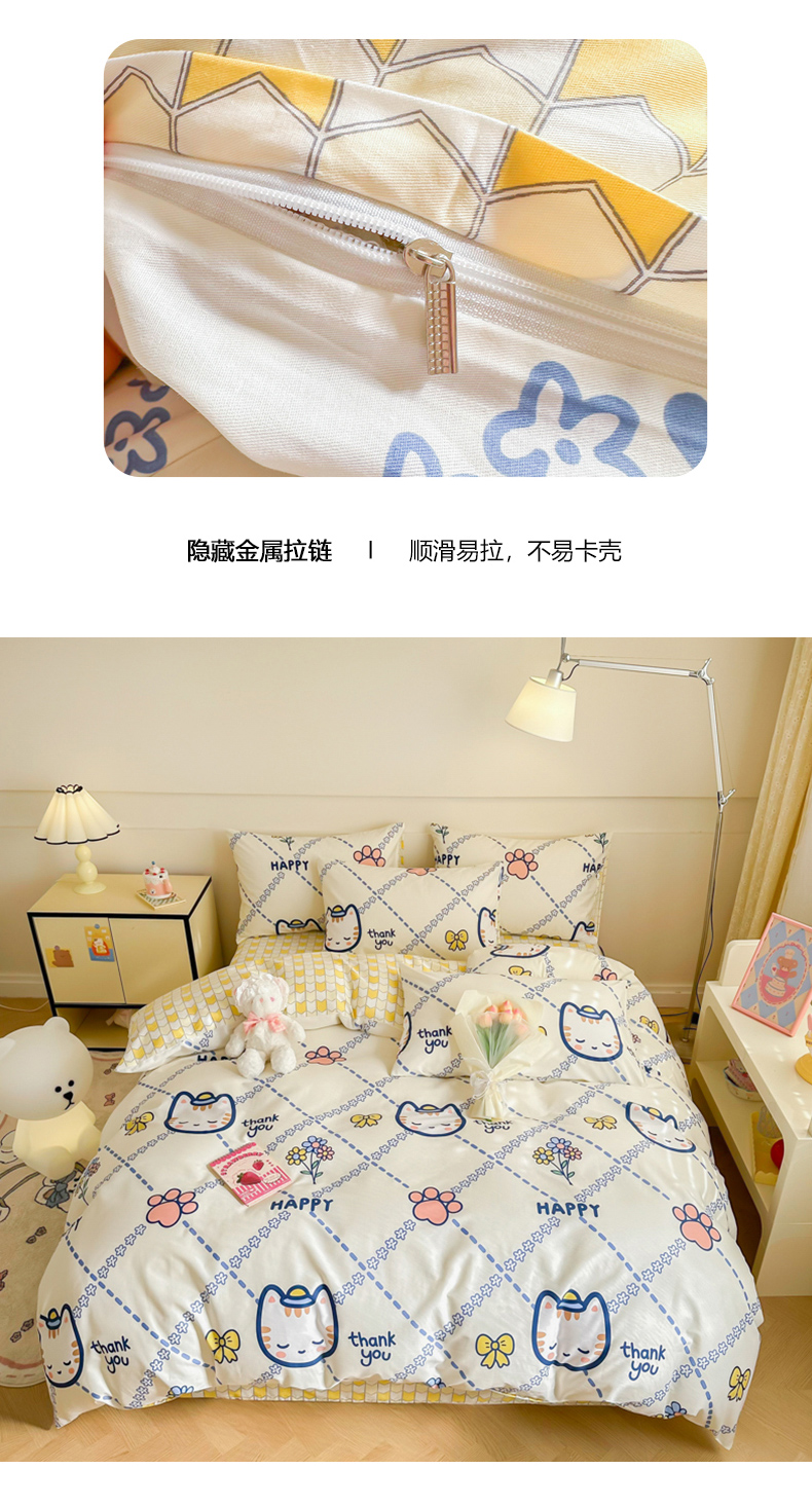 商品名称:呗旺鹿 2024新款小清新全棉纯棉四件套小懒猫