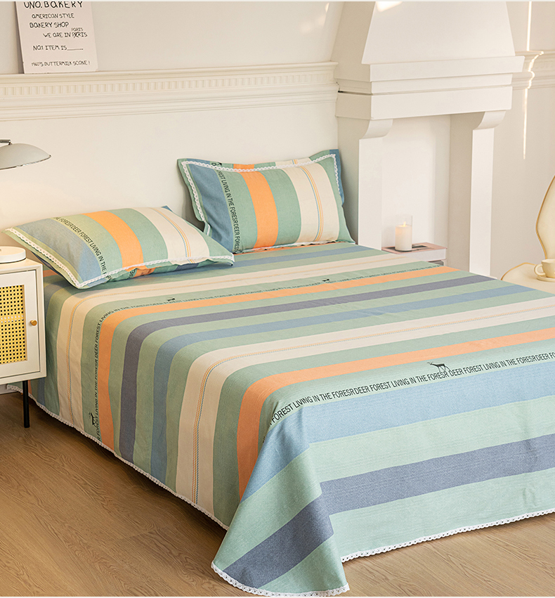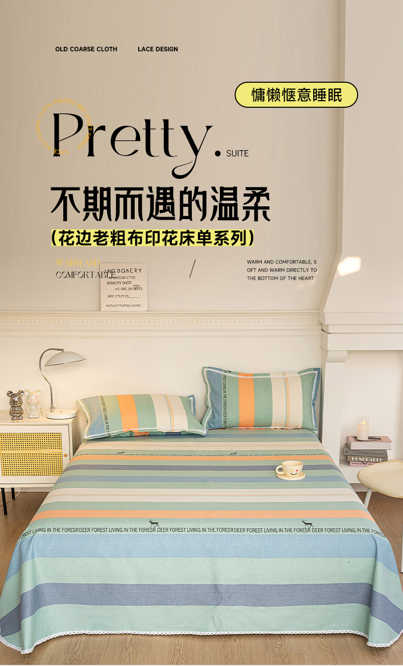 首爱家纺 2025新款花边老粗布印花床单系列套件 时尚鹿条