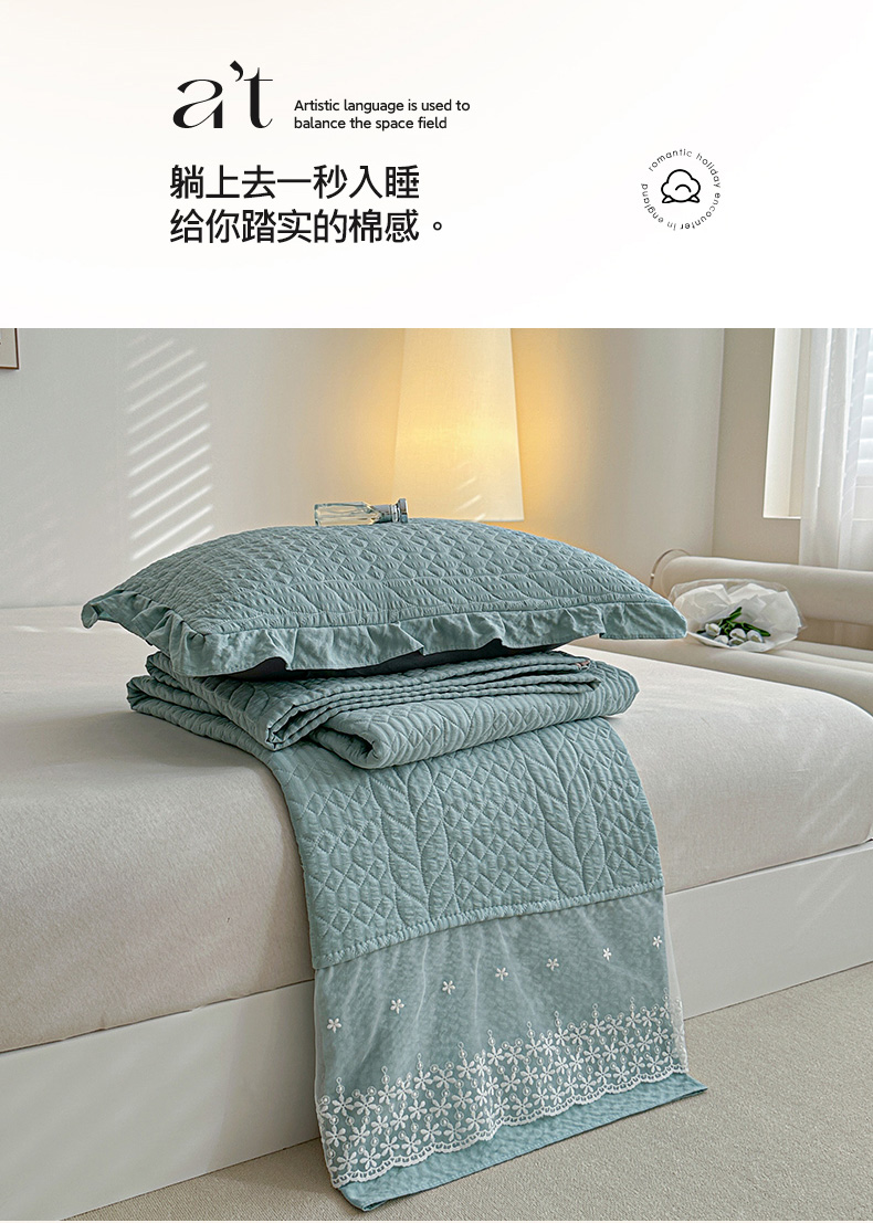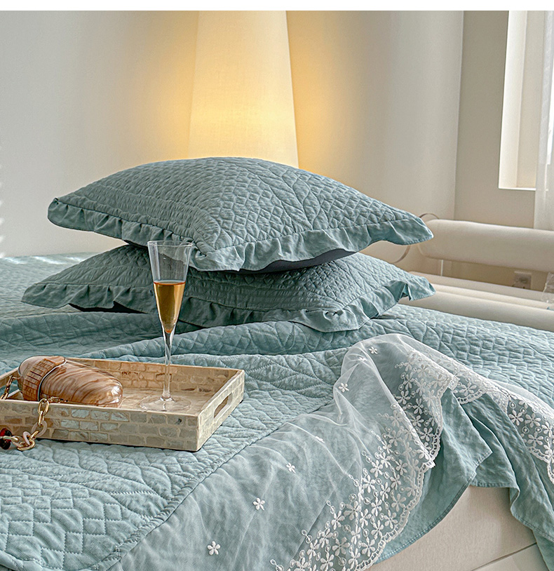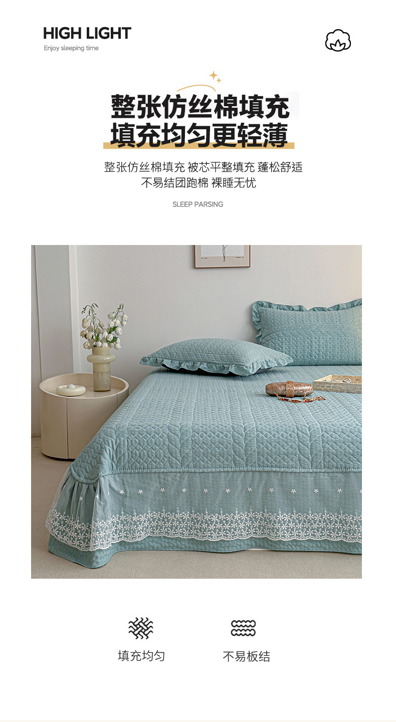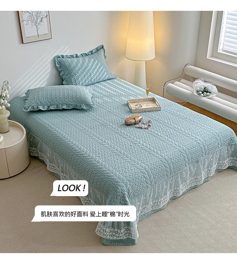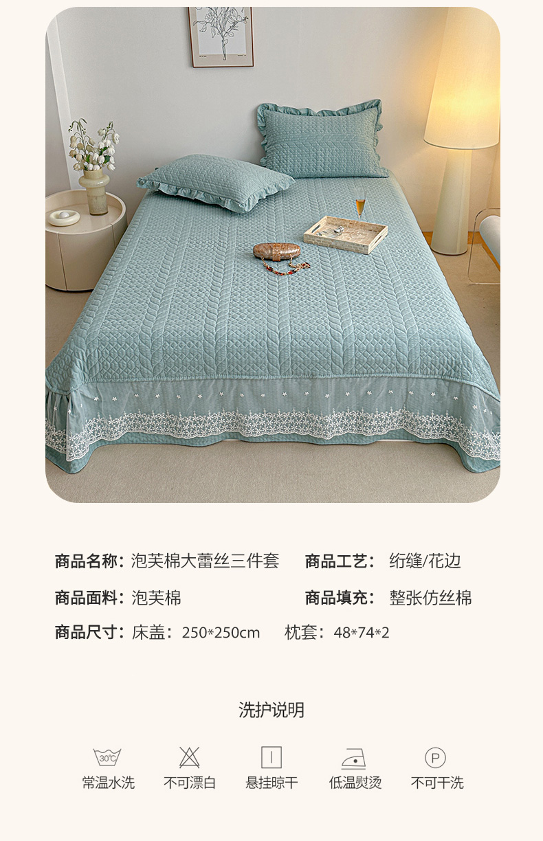 商品名称:源舜家纺 2025新款泡芙棉大蕾丝床盖款三件套 花边青色