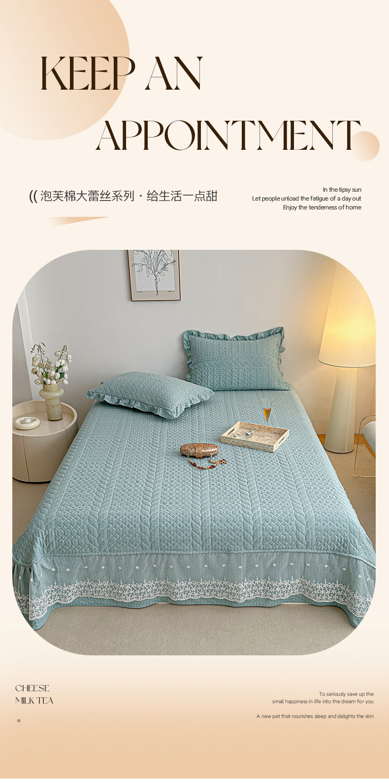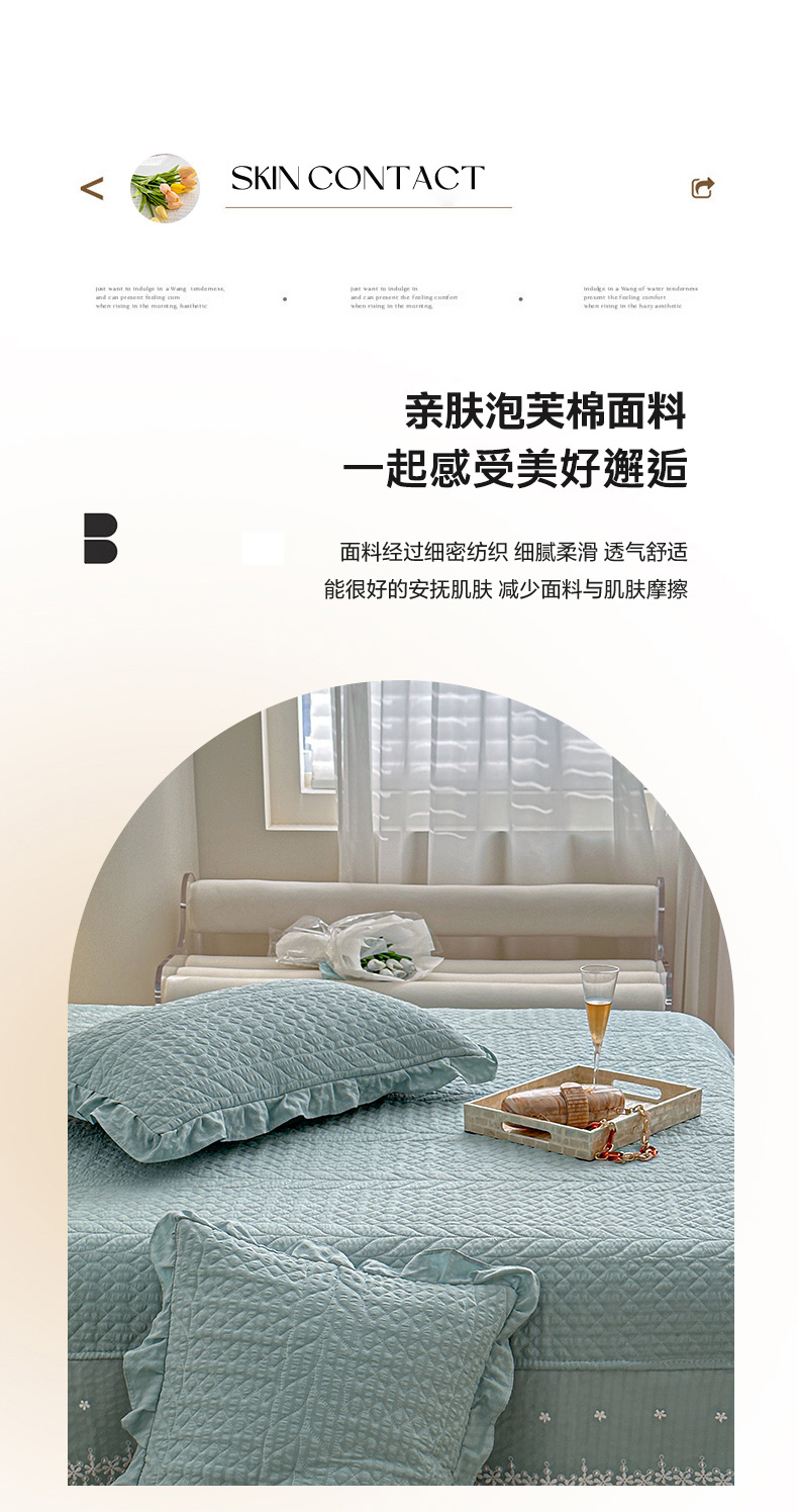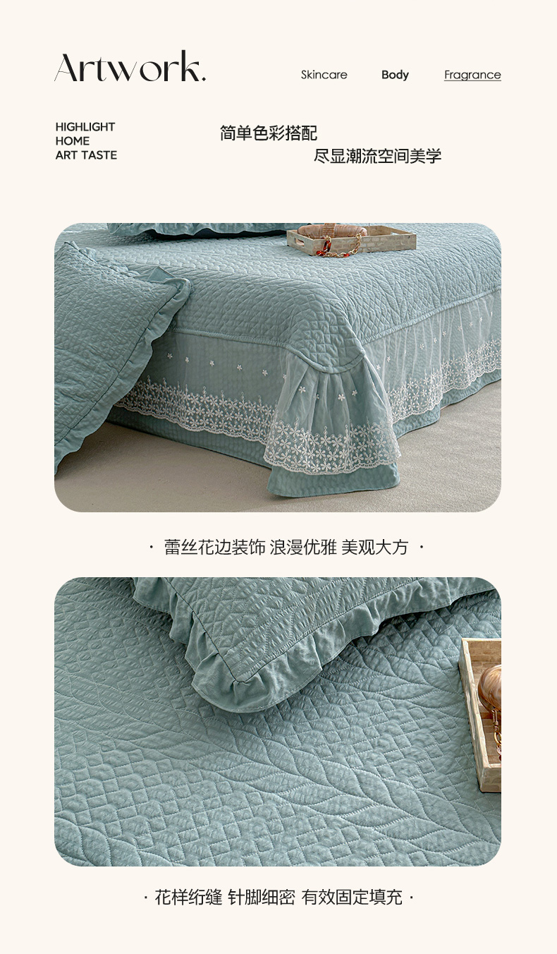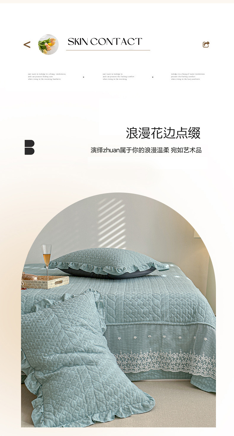 商品名称:源舜家纺 2025新款泡芙棉大蕾丝床盖款三件套 花边青色