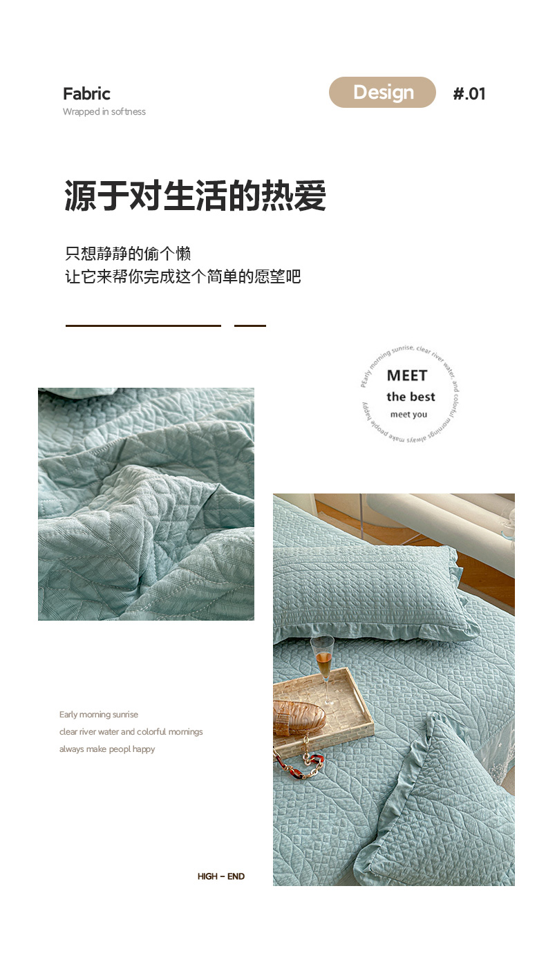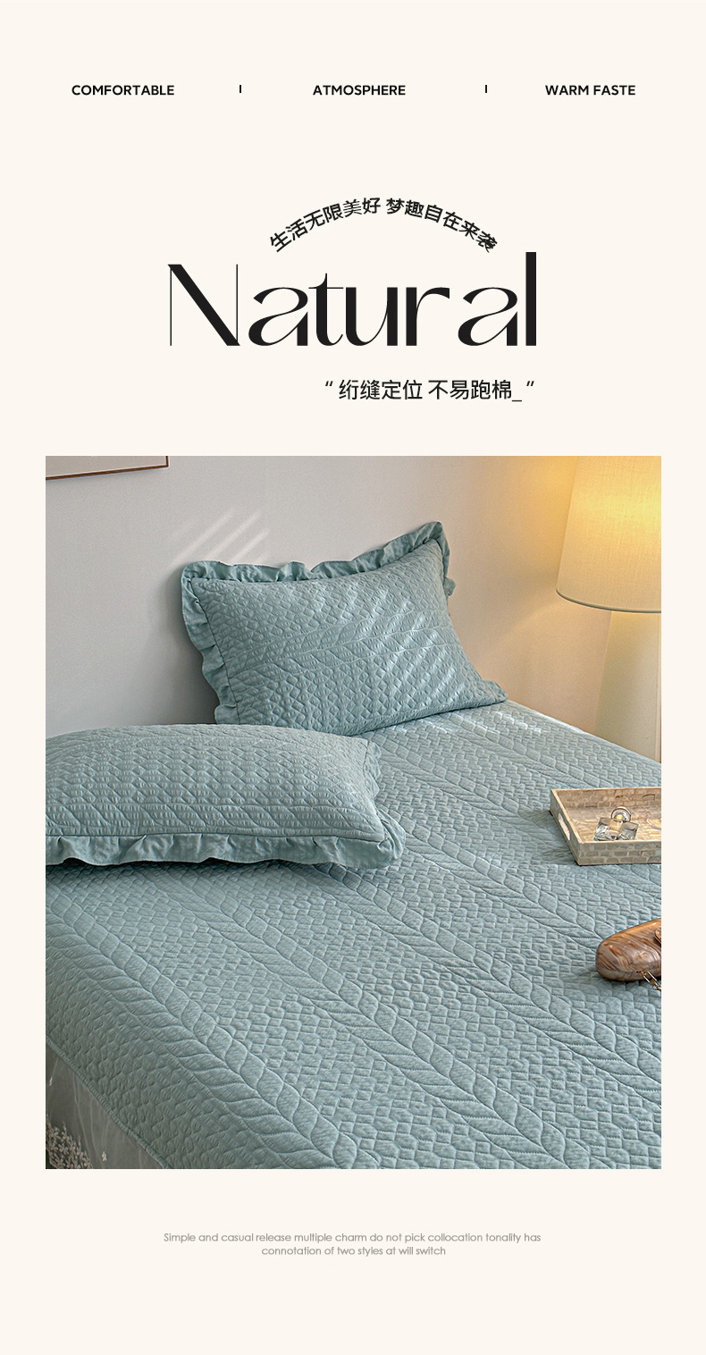 (总)源舜家纺 2025新款色织棉简约韩系花边床盖三件套,简约灰,简约粉,简约绿,简约驼,简约蓝