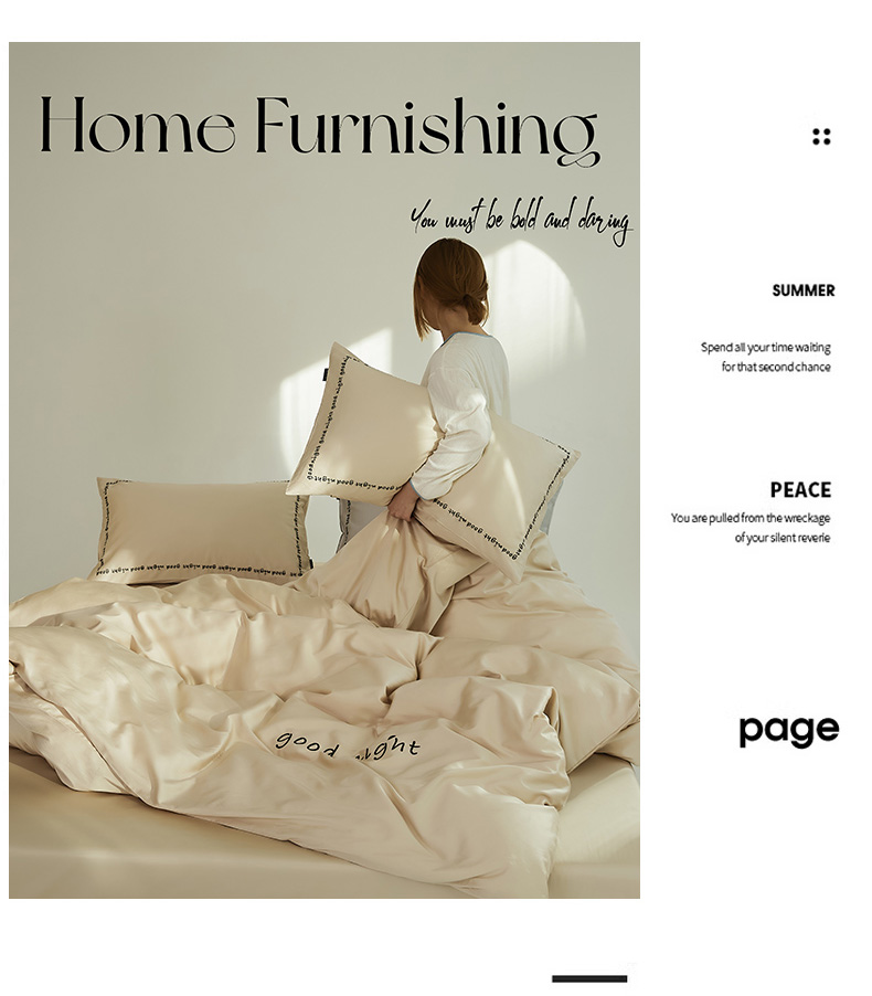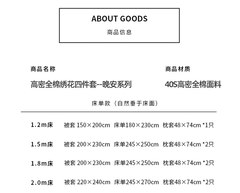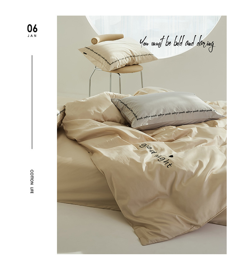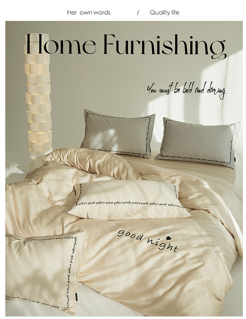 当前位置: 91家纺网 > 商品网购 > 床品套件 > 四件套 > 全棉普通四件套 > 新款高密全棉绣花四件套--晚安系列 英文版 晚安-沉香