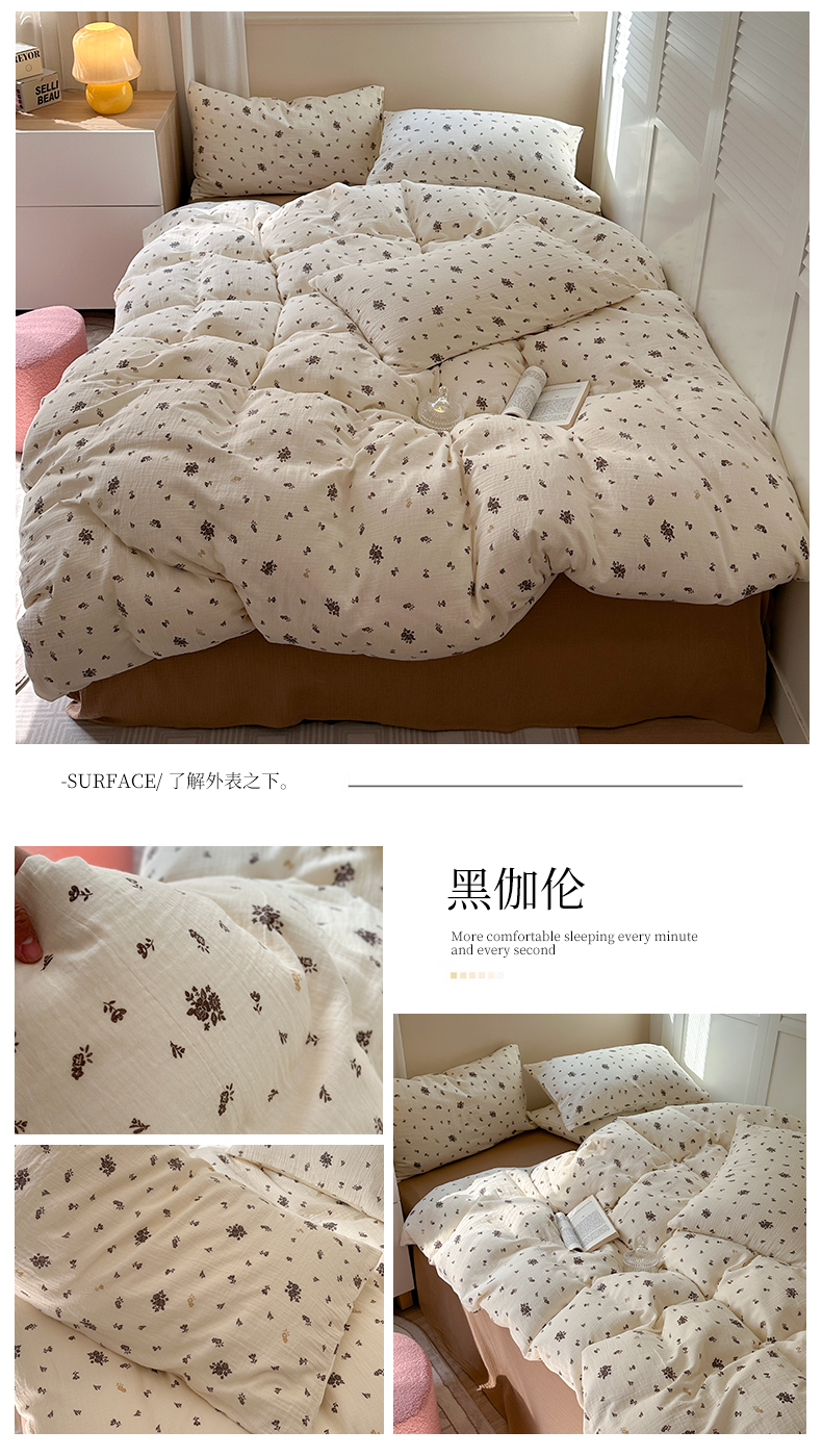 萝莉家纺 2025新款全棉双层皱皱纱四件套 黑伽伦