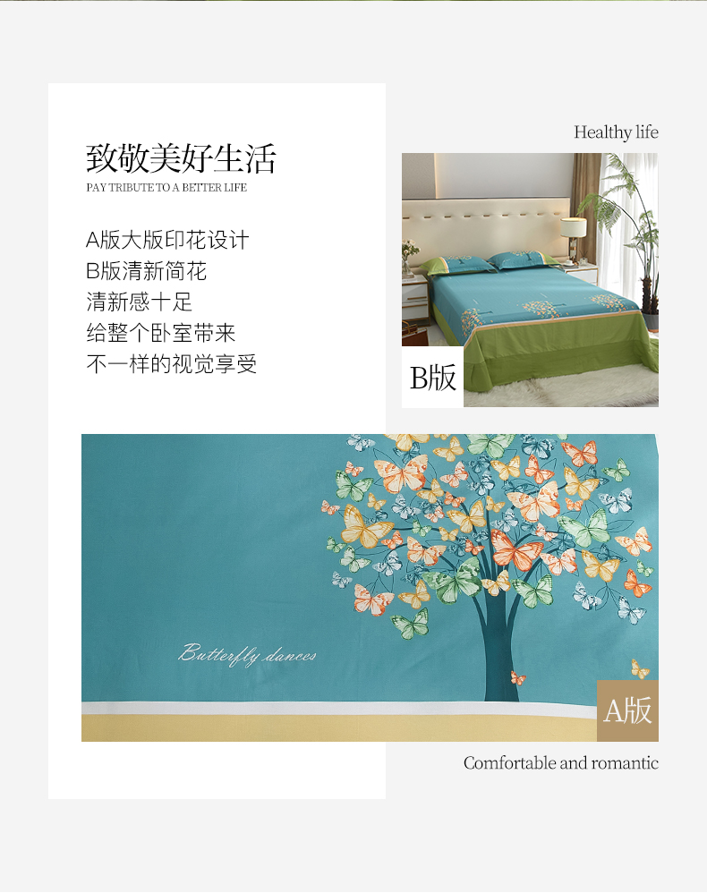 商品名称:格里芬家纺 2025新款全棉大版13372纯棉印花四件套 蝴蝶谷