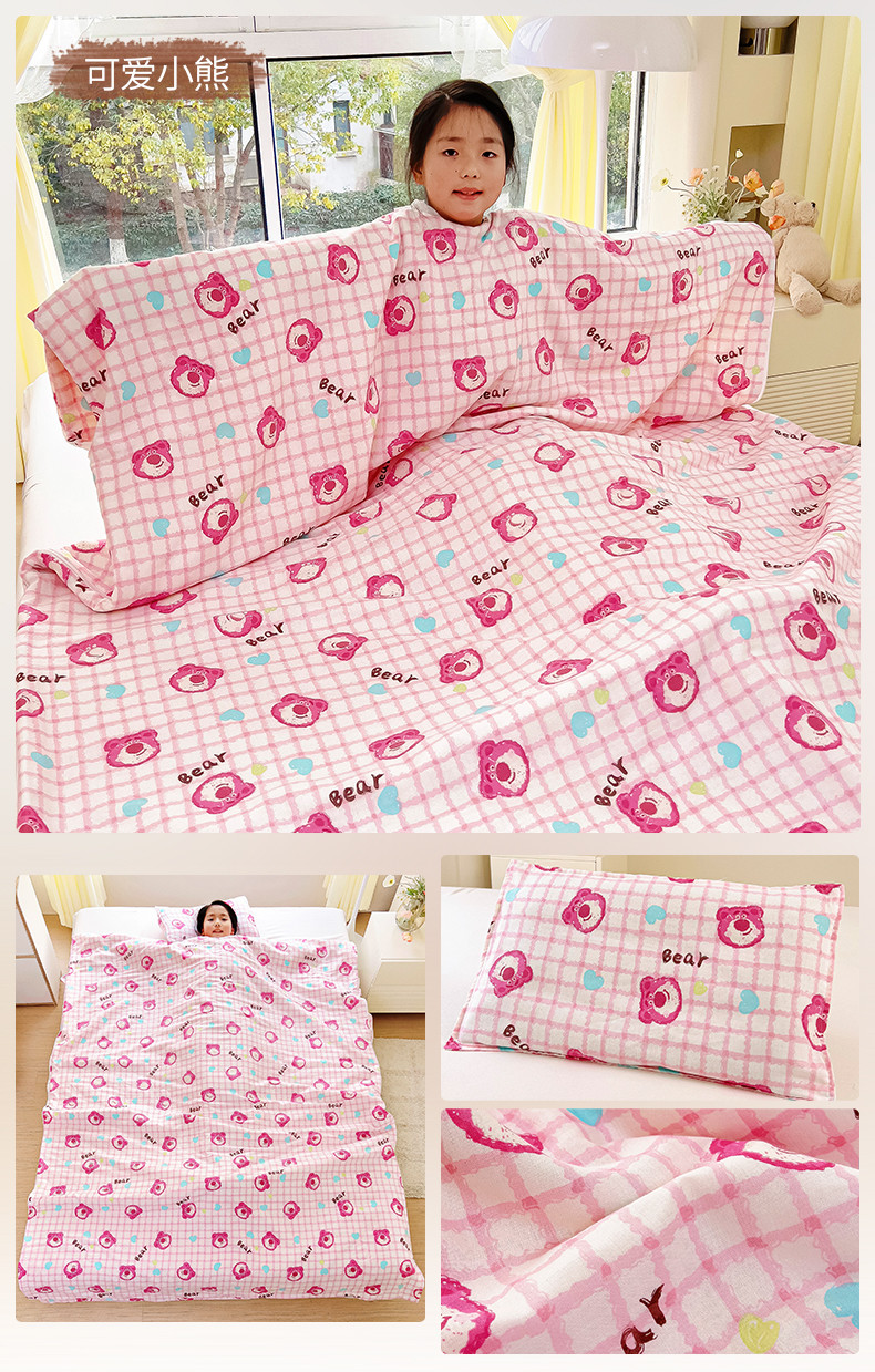 商品名称:A类夏季纯棉睡袋双层纱棉花薄款春秋宝宝中大童儿童防踢被神器可爱小熊