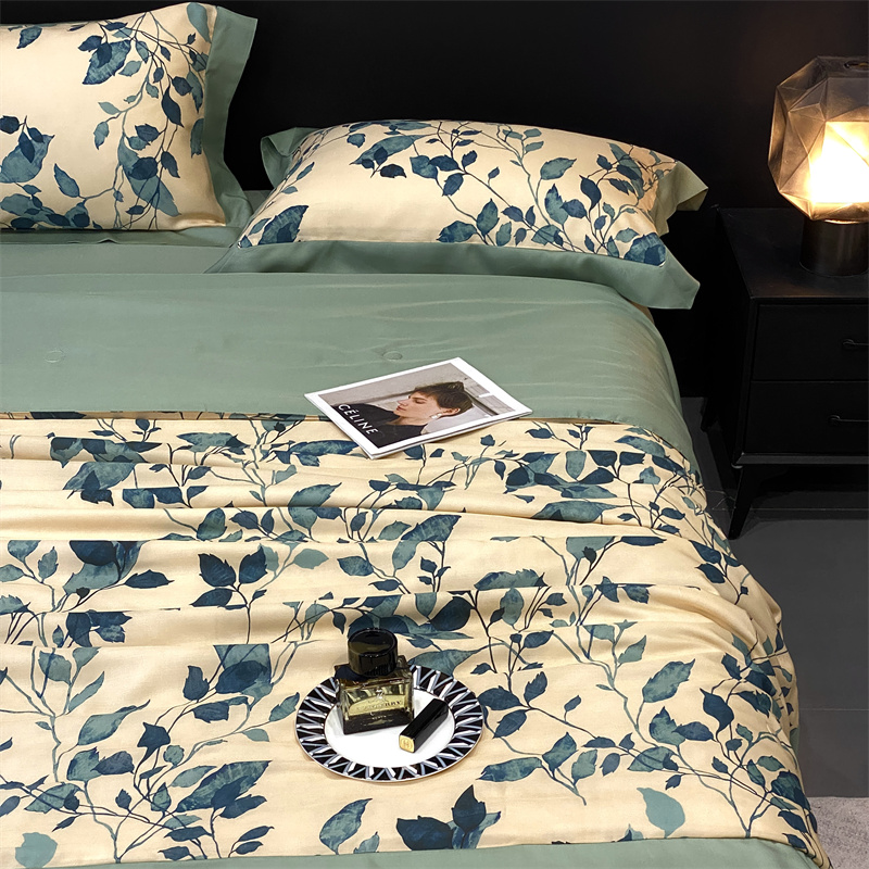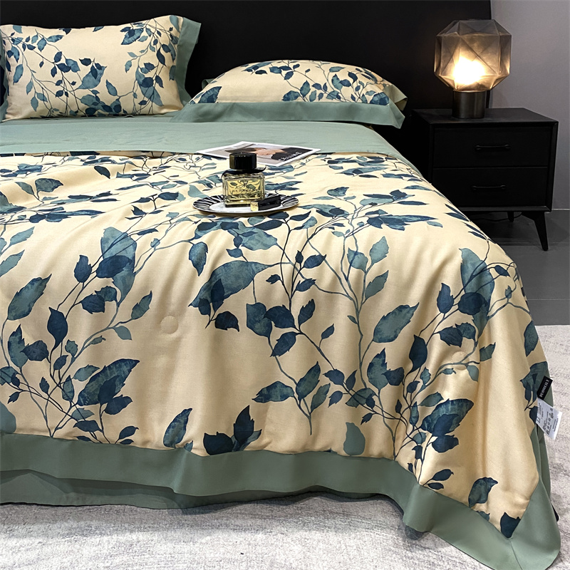2022新款60支雅棉夏被+夏被四件套 古案(绿),古案(绿)