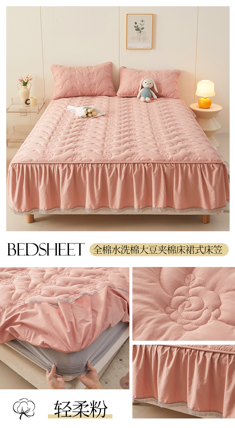 (总)3C 2024新款玫瑰水洗棉床裙式床笠
