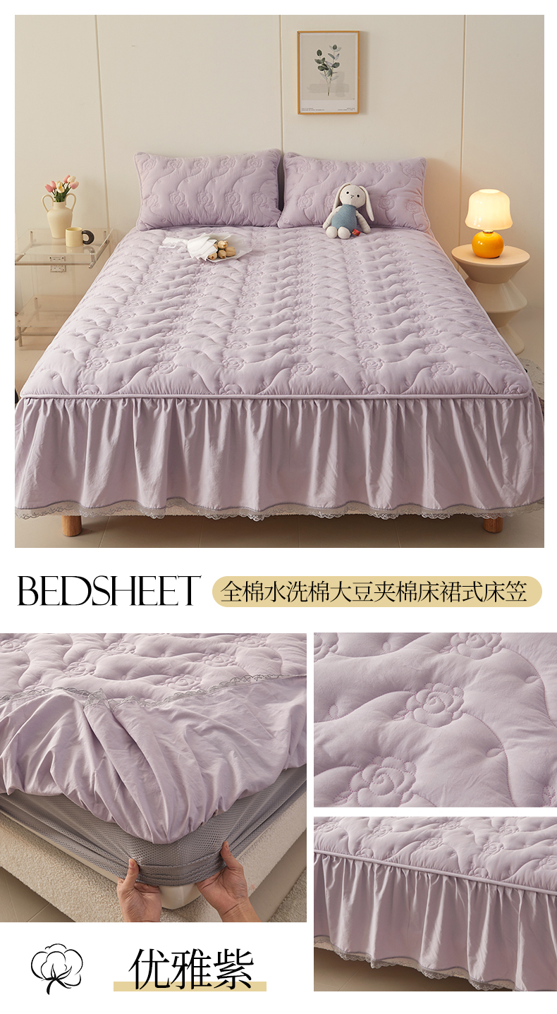 3C 2024新款全棉水洗棉棉花床笠 优雅紫,优雅紫