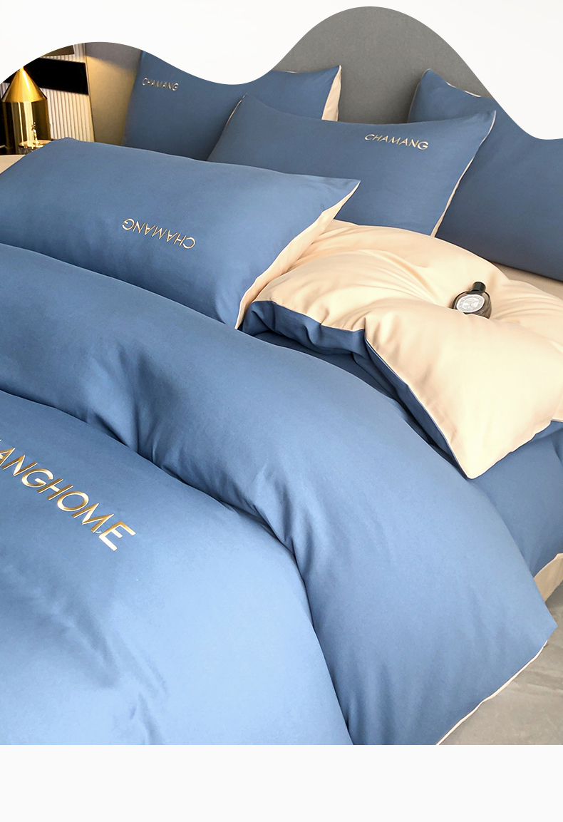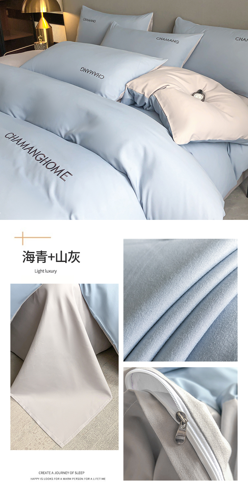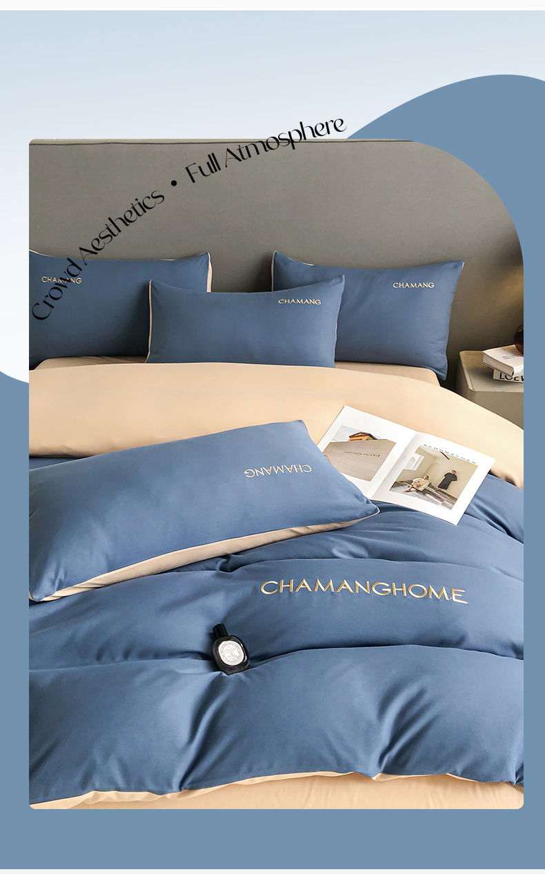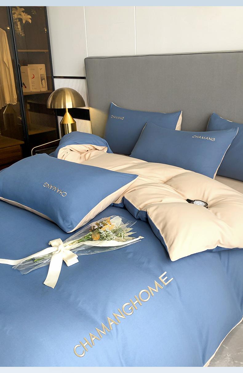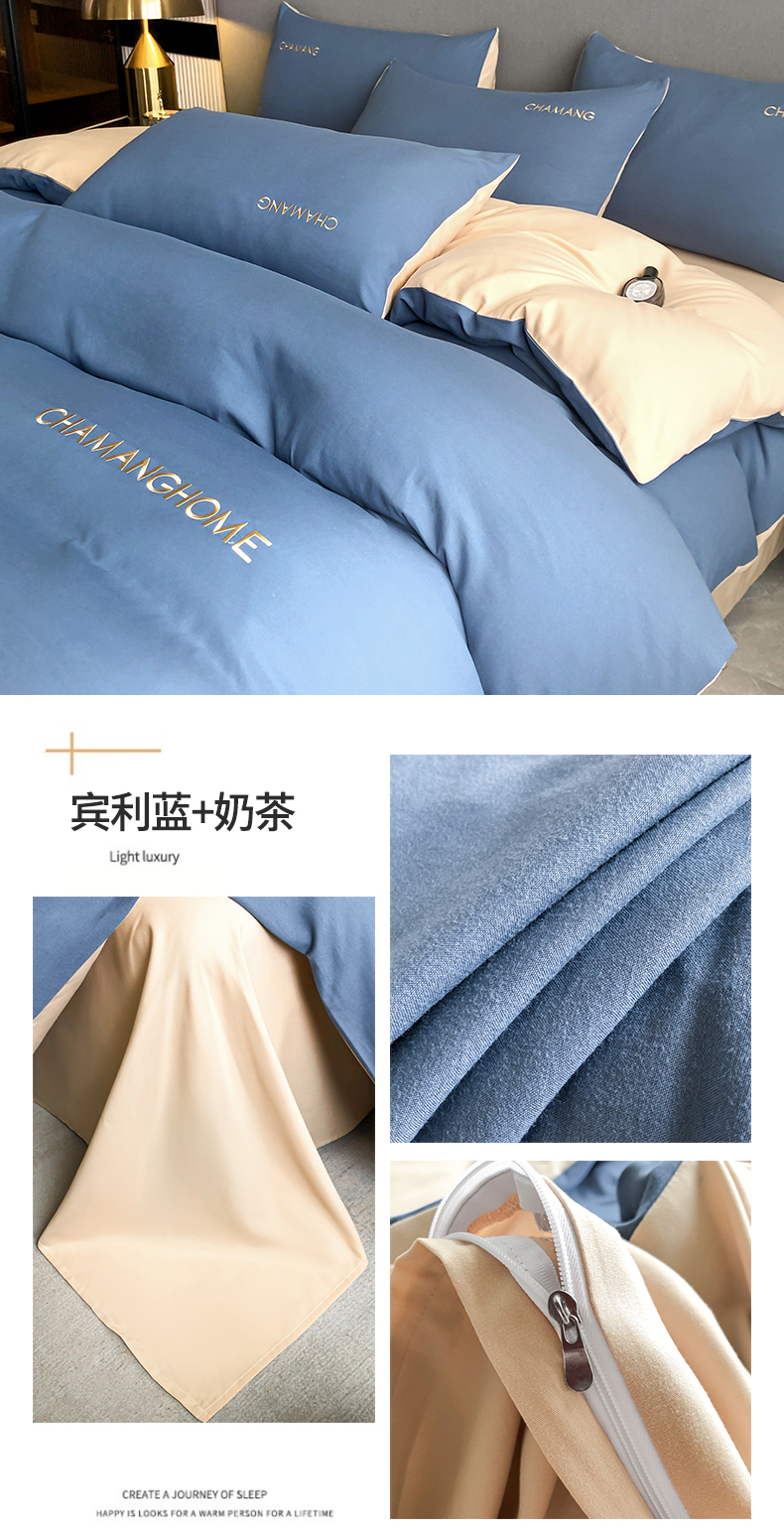 (总)小久久 2024新款A类纯棉刺绣四件套-克洛伊,繁星蓝,奶昔白+奶茶,奶昔白+奶油粉,奶油粉