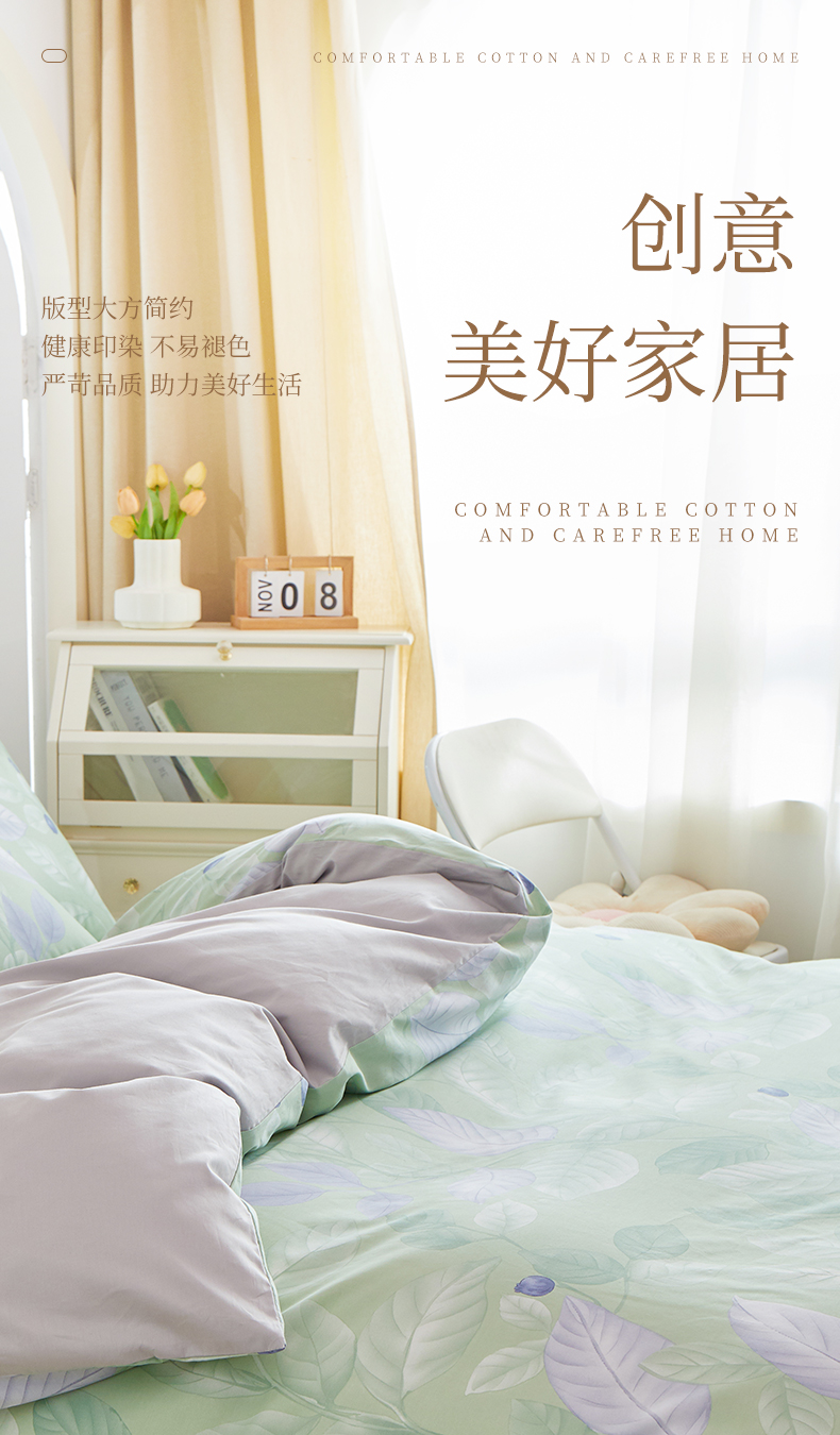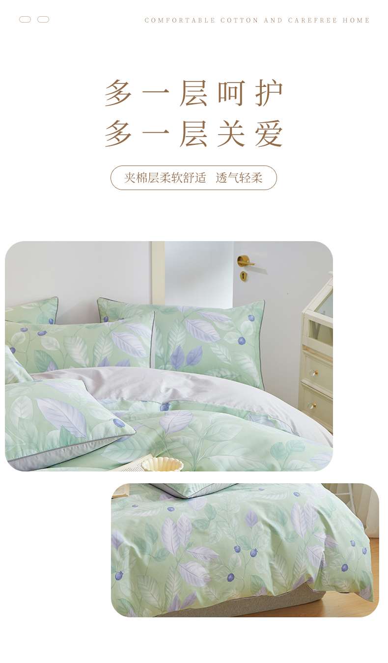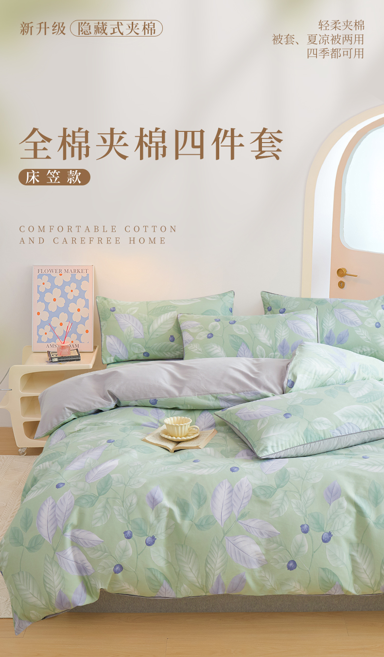 当前位置: 91家纺网 > 商品网购 > 床品套件 > 四件套 > 全棉普通四件套 > 元元被业 2024新款小清新隐藏式全棉夹棉四件套床笠款 淡然若尘-绿
