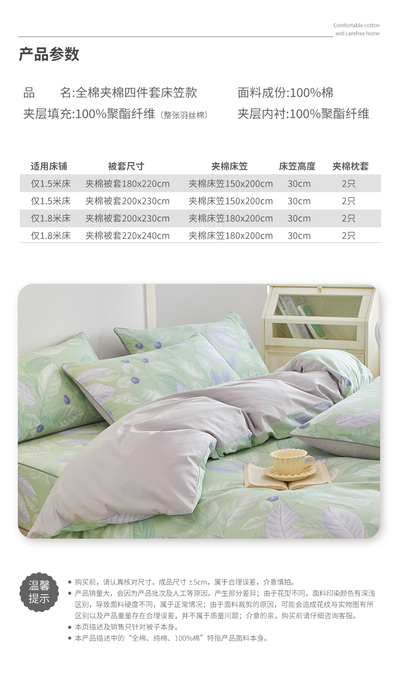 夹棉被套2.0夹棉床笠1.5枕套四件 | ¥195.00 |