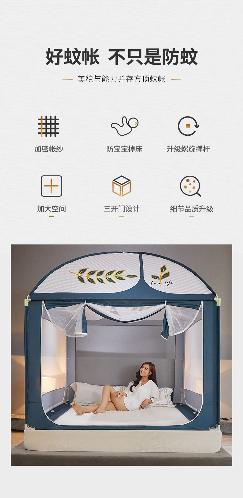 飞轮海蚊帐 2024新款三开门防尘蚊帐-MZ-02初夏 宾利蓝