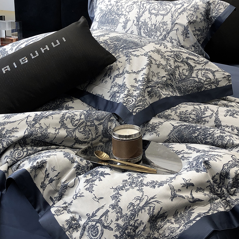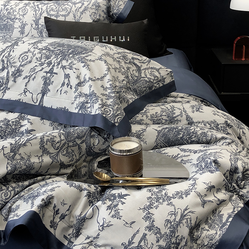 商品名称:太古汇 2024新款全棉色织大提花双拼四件套--墨尔本 墨尔本-蓝