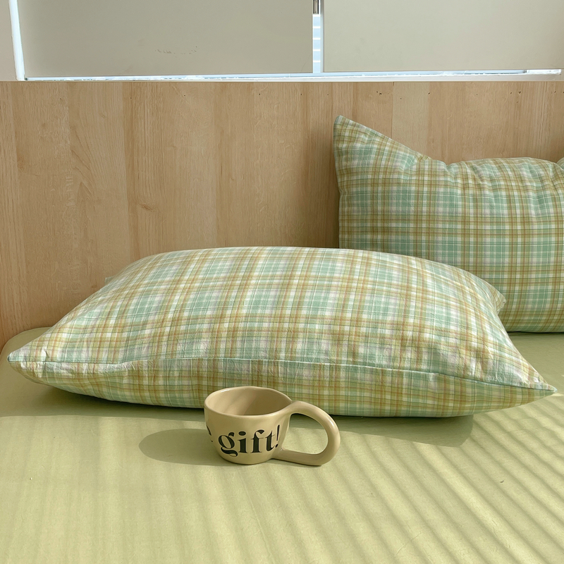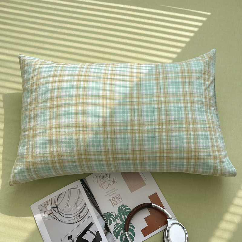 艾咪 2024新款全棉色织水洗棉单品-枕套 多芙水绿