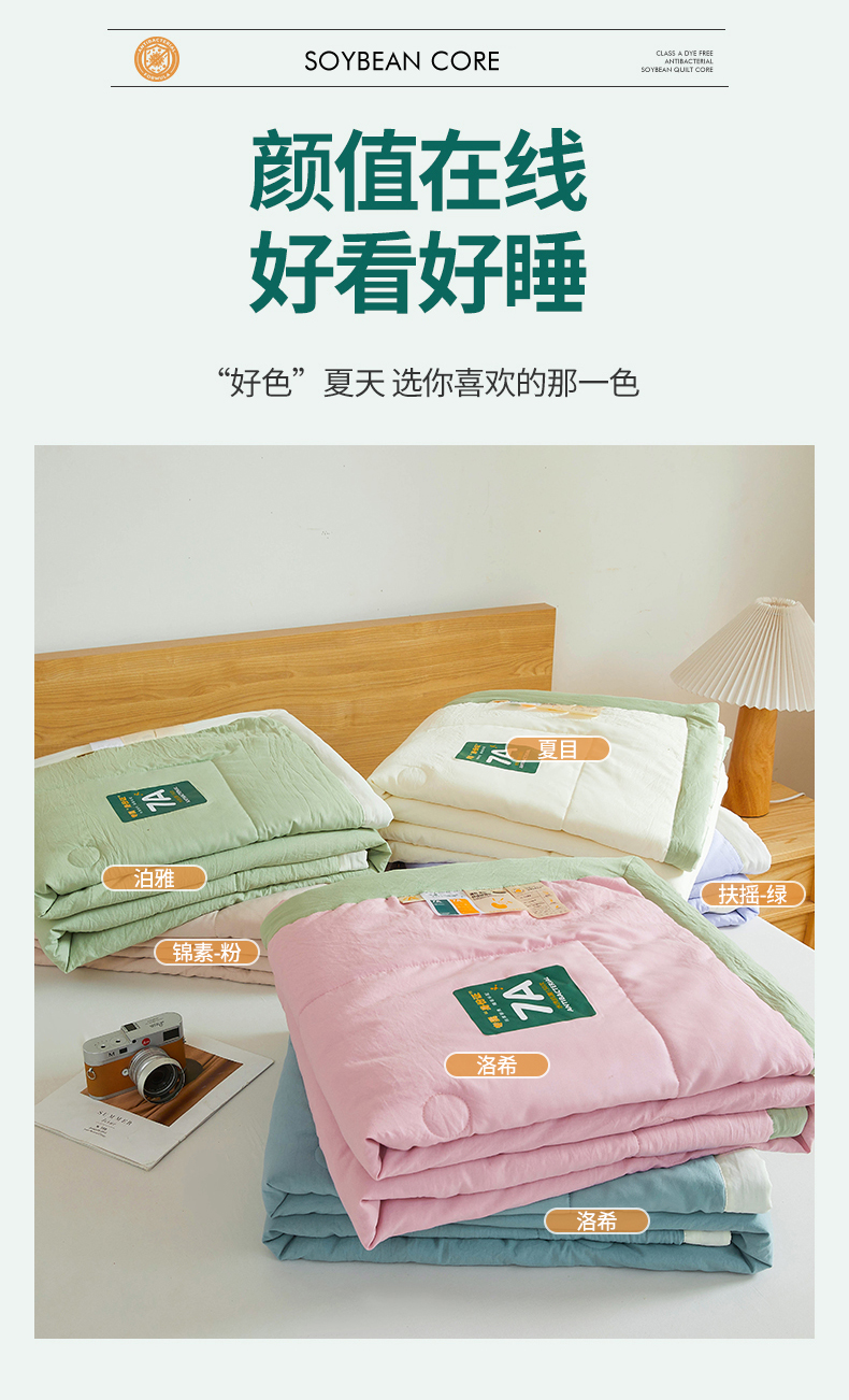 (总)欢乐季 2025新款7A抗菌原棉大豆夏被夏凉被,高级咖,抹茶绿,奶油白,雾霾蓝,香芋紫,樱花粉