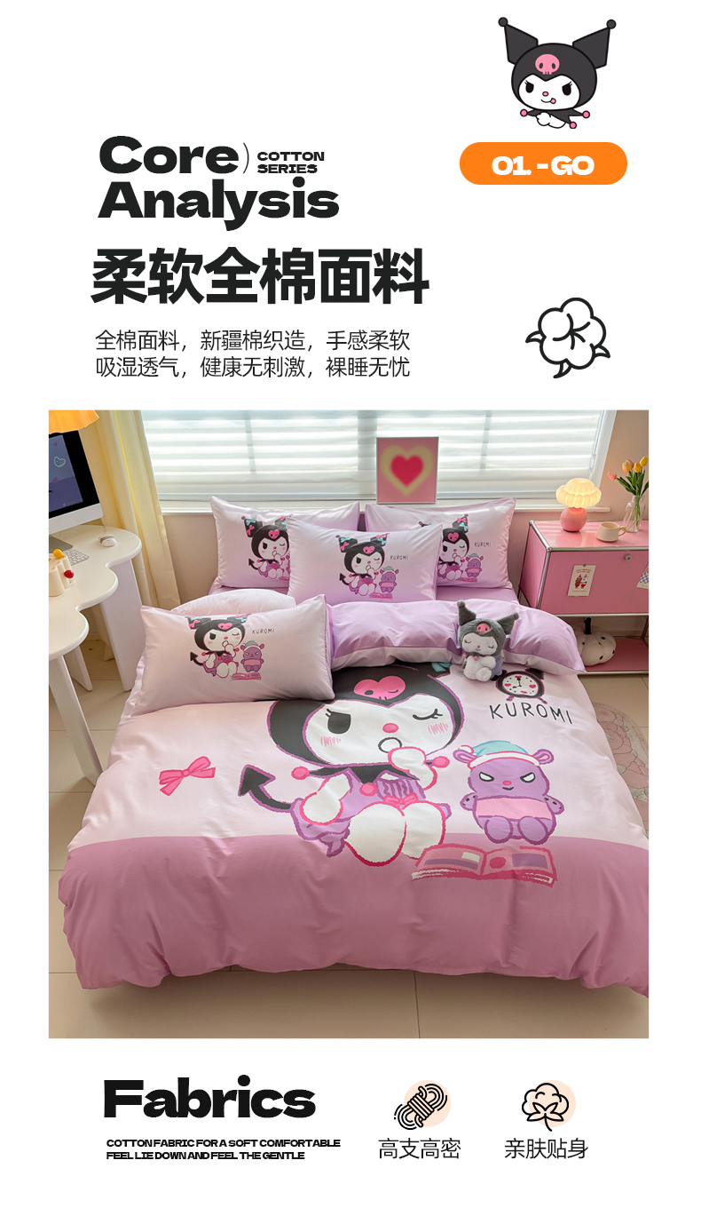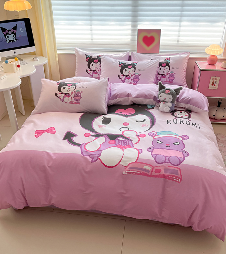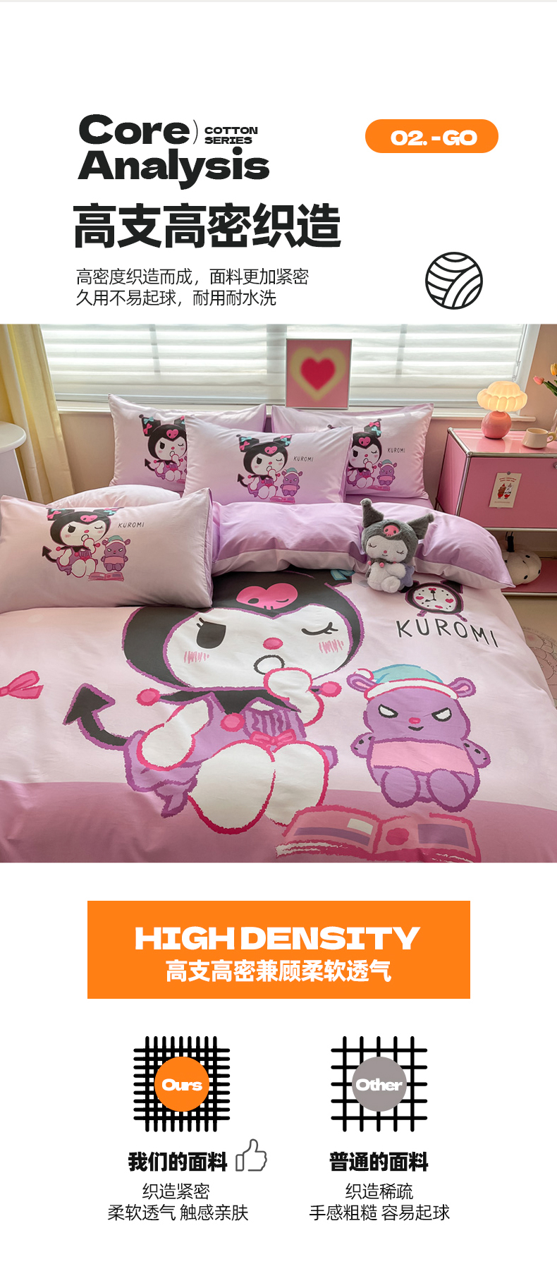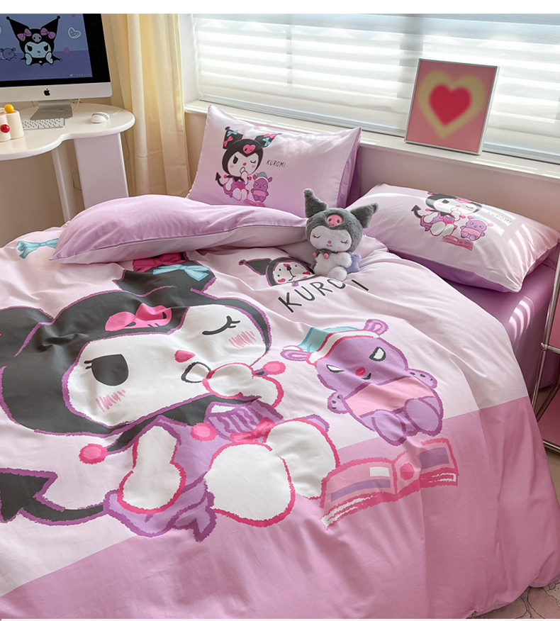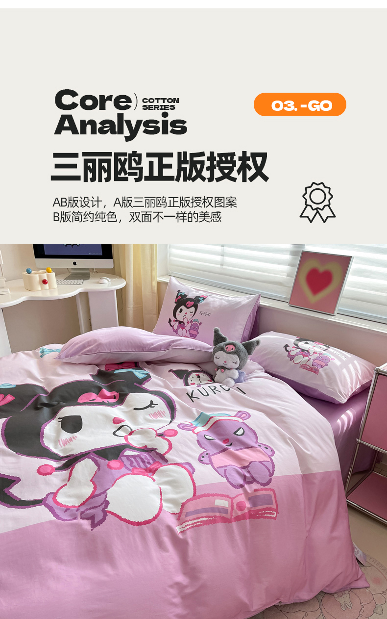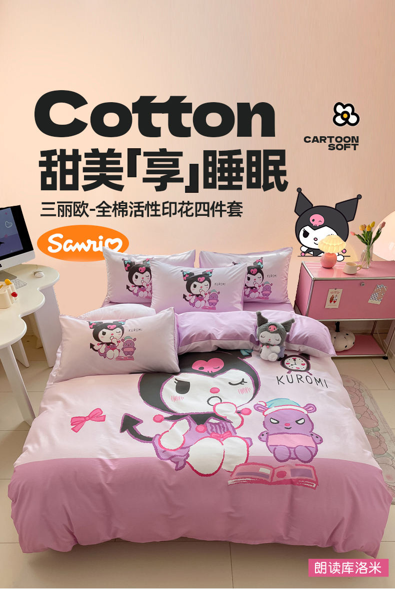 当前位置: 91家纺网 > 商品网购 > 床品套件 > 四件套 > 全棉普通四件套 > 金爱家 2024新款大阪全棉数码印花三丽鸥系列四件套 朗读库洛米