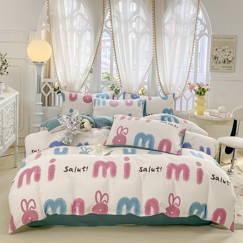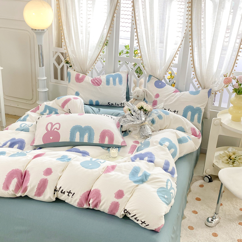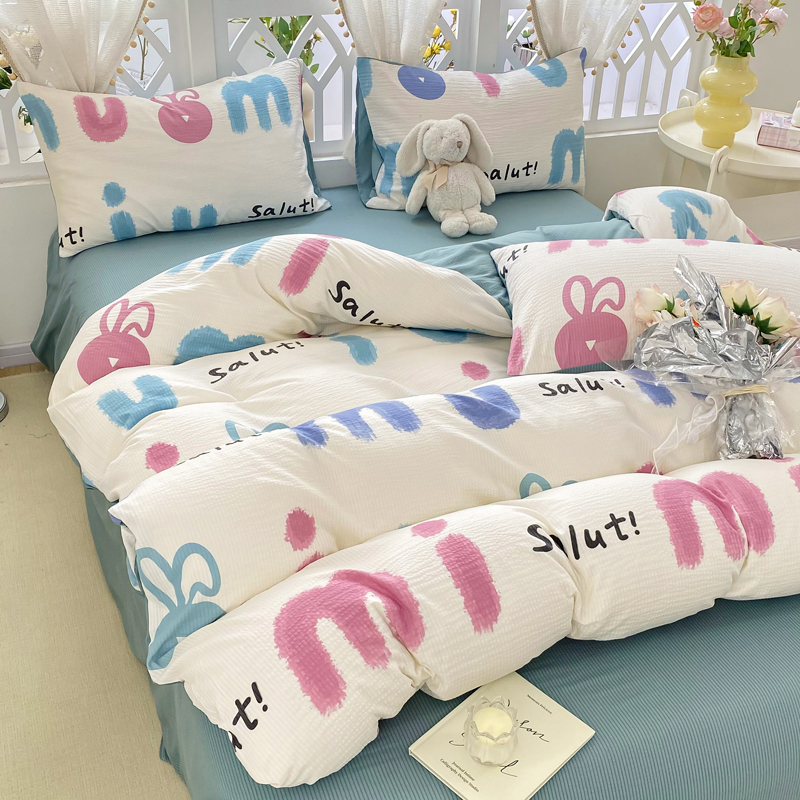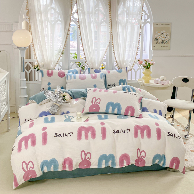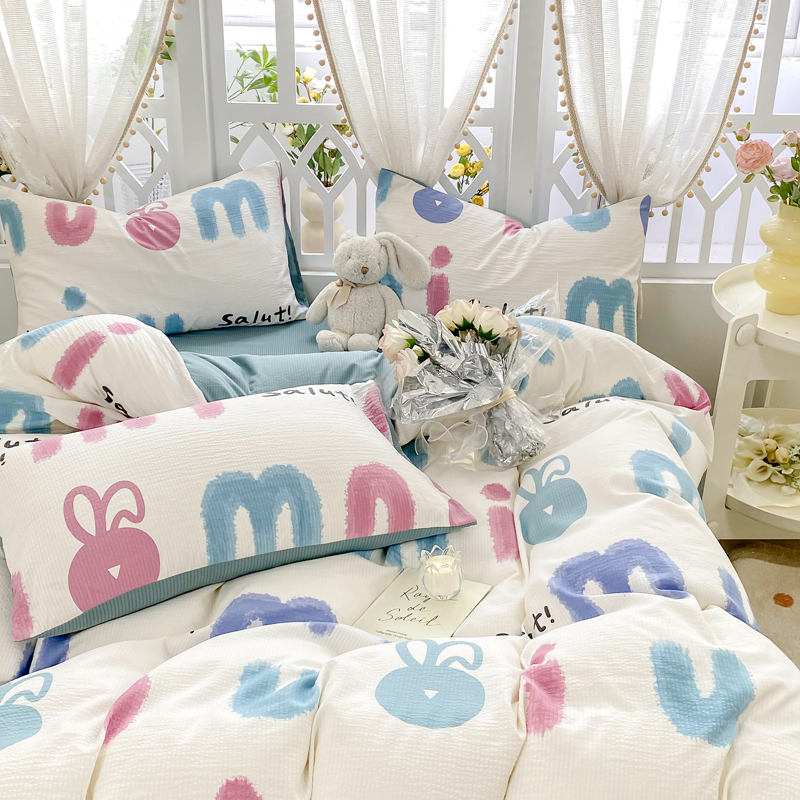 当前位置: 91家纺网 > 商品网购 > 床品套件 > 四件套 > 其它四件套 > 牛牛家纺 牛牛 2024新款泡泡棉小清新四件套(1) 七彩兔