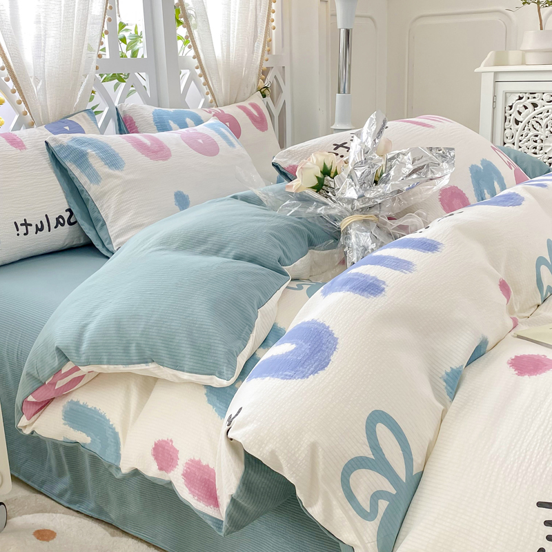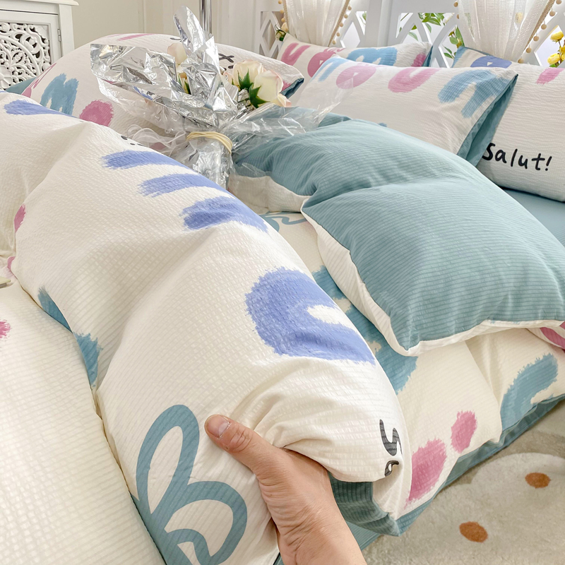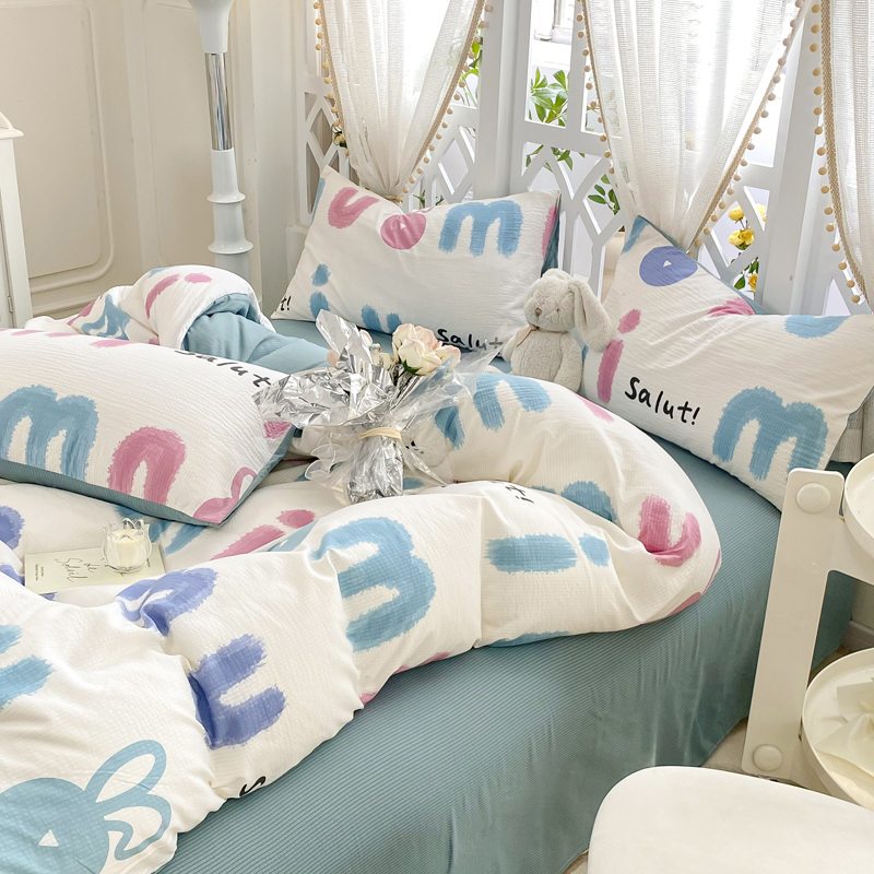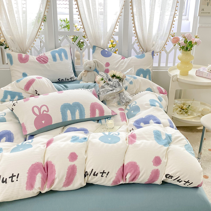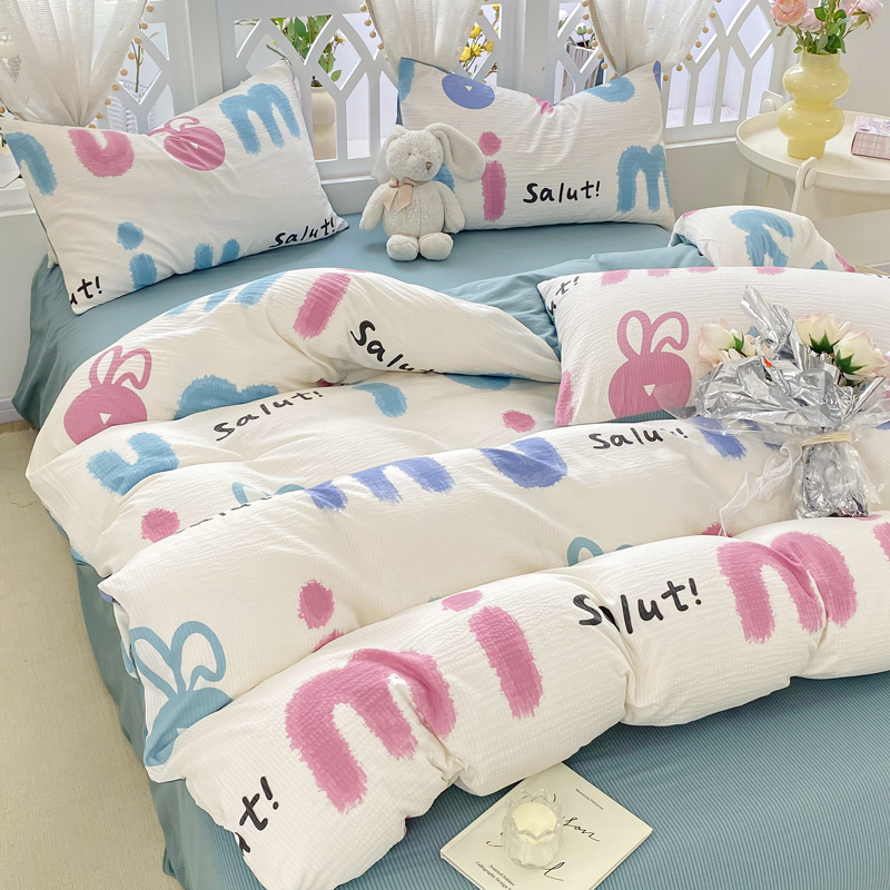 当前位置: 91家纺网 > 商品网购 > 床品套件 > 四件套 > 其它四件套 > 牛牛家纺 牛牛 2024新款泡泡棉小清新四件套(1) 七彩兔