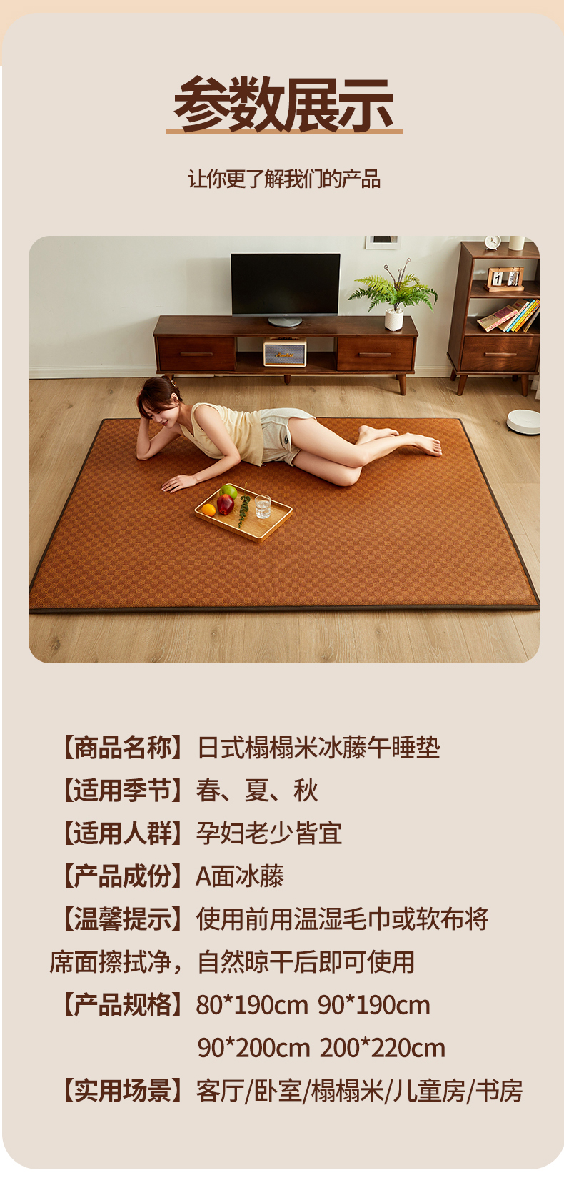 当前位置: 91家纺网 > 商品网购 > 床垫/床褥 > 榻榻米床垫 > 祁恋婷家居 2024新款日式榻榻米冰藤午睡垫-大床 罗马格-咖色