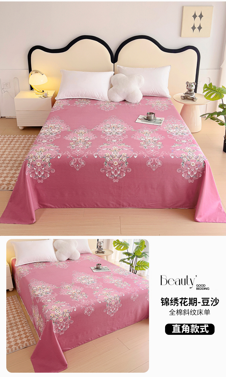 情煊家纺 2024新款全棉斜纹直角床单系列-印花款 锦绣花期-豆沙
