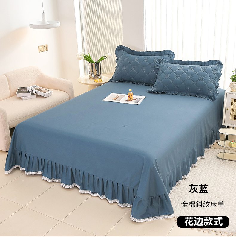 商品名称:情煊家纺 2024新款全棉斜纹花边床单系列-纯色款 灰蓝