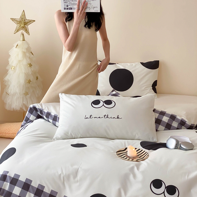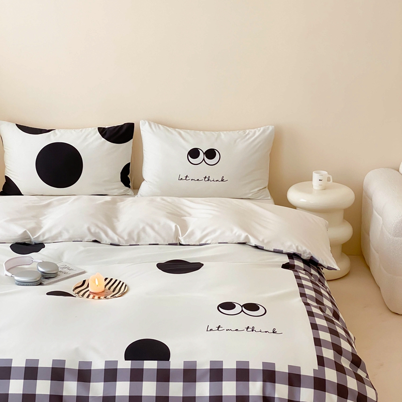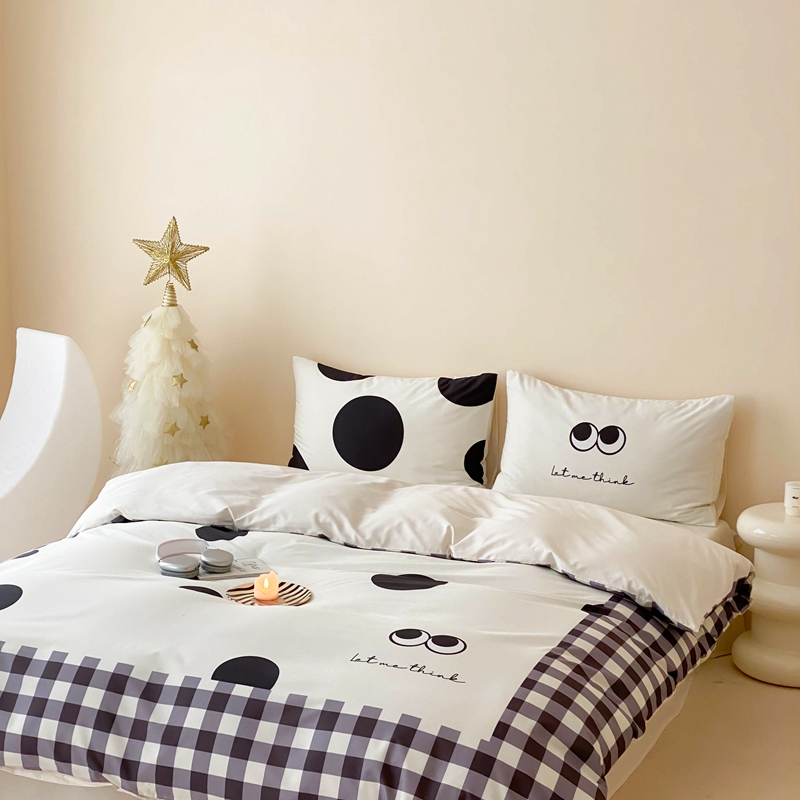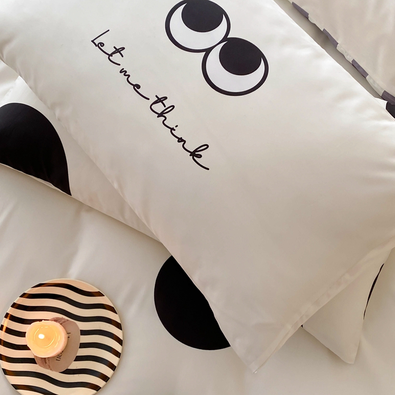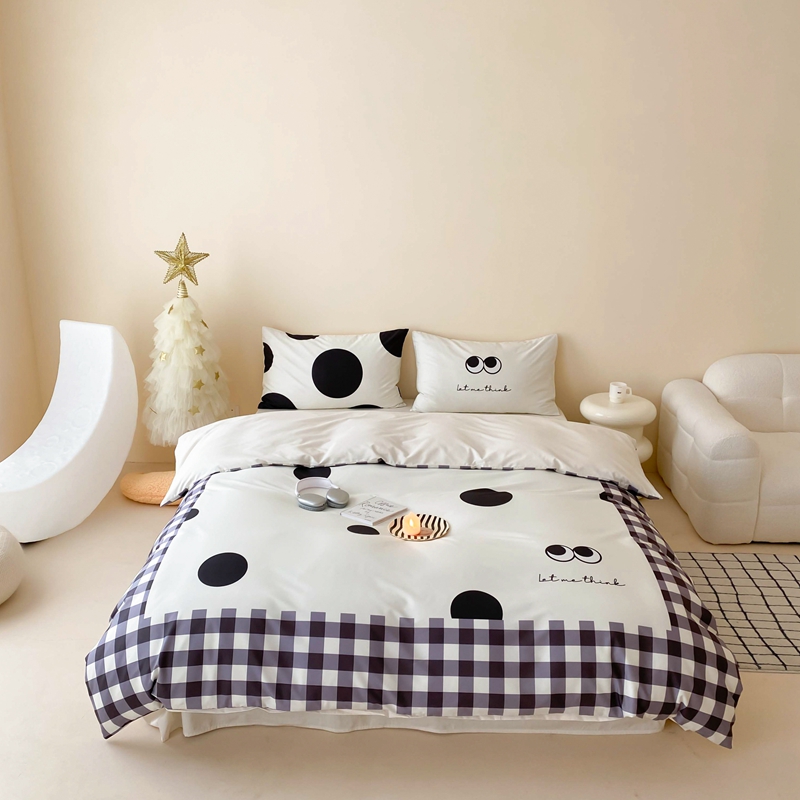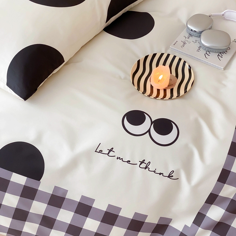 桃喜 2024新款13372大版数码印花系列四件套 黑色豆豆