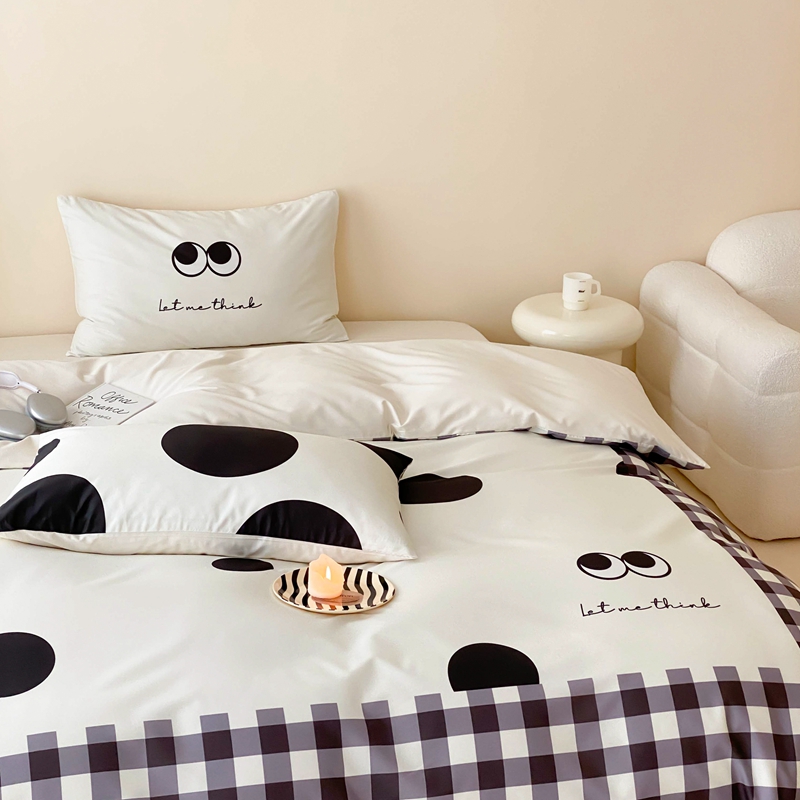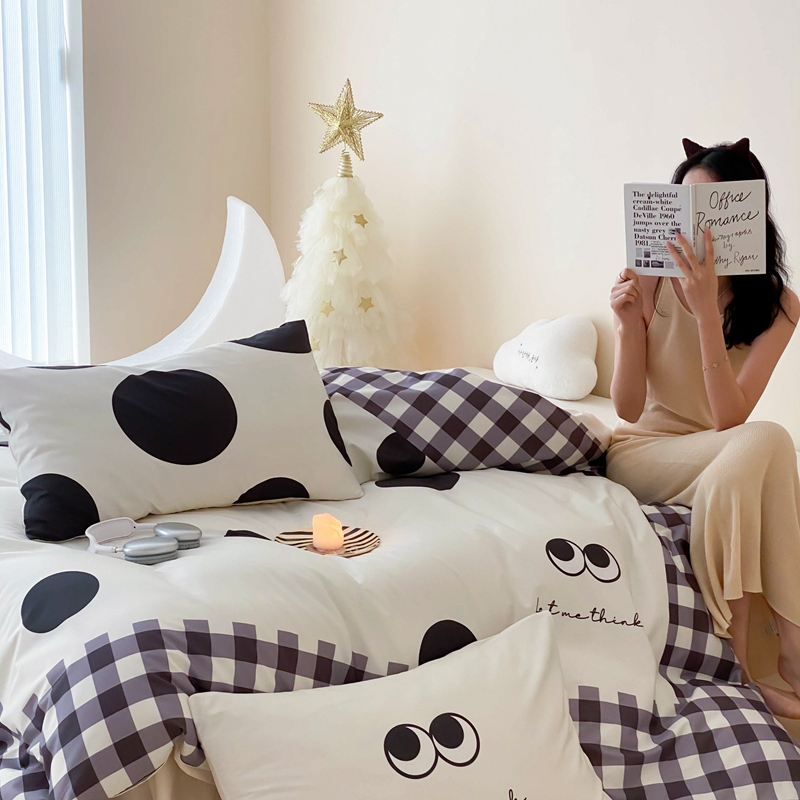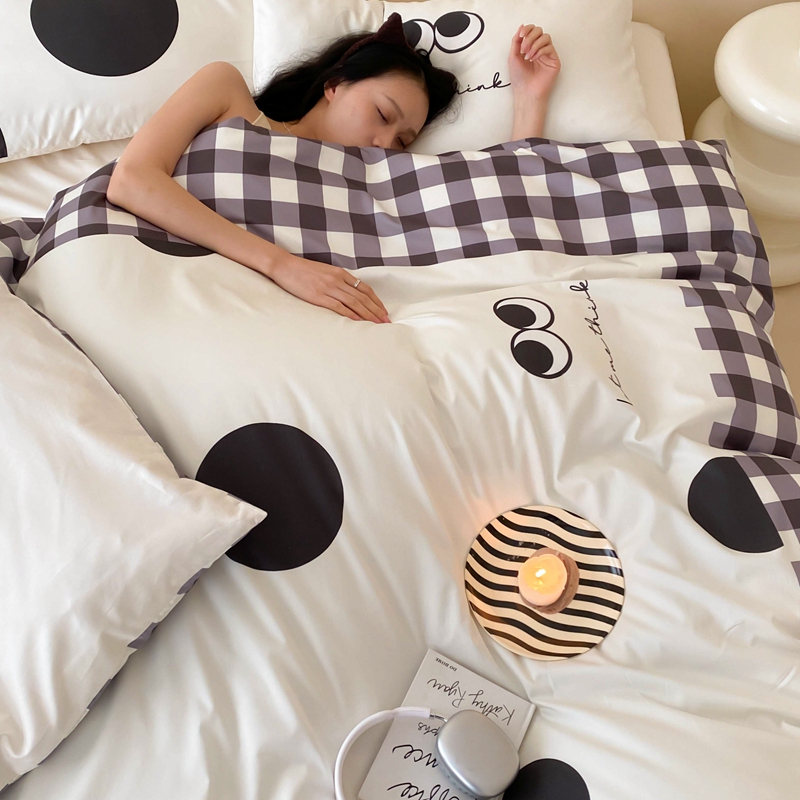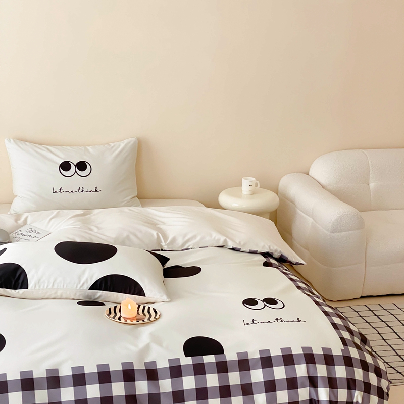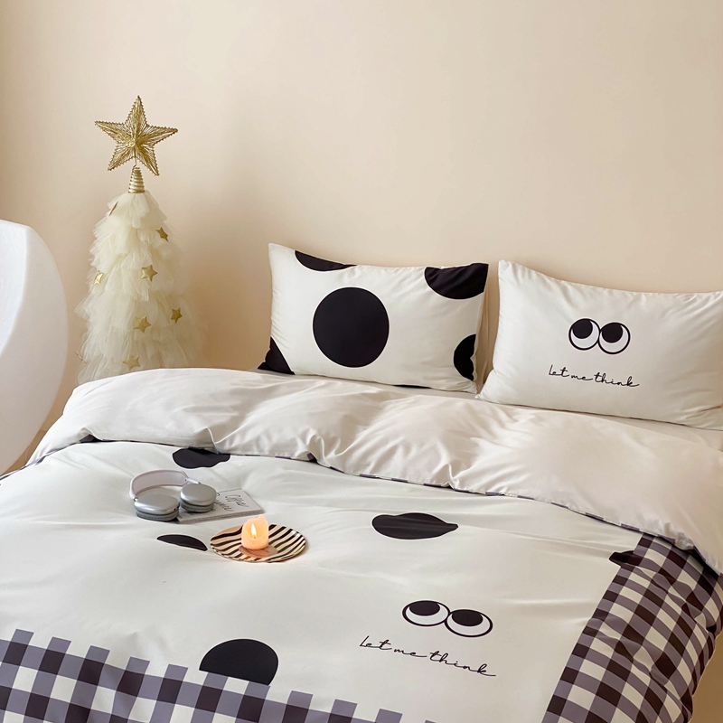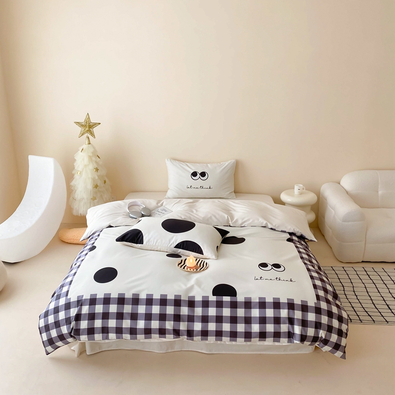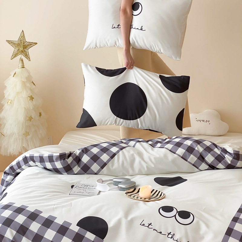 桃喜 2024新款13372大版数码印花系列四件套 黑色豆豆