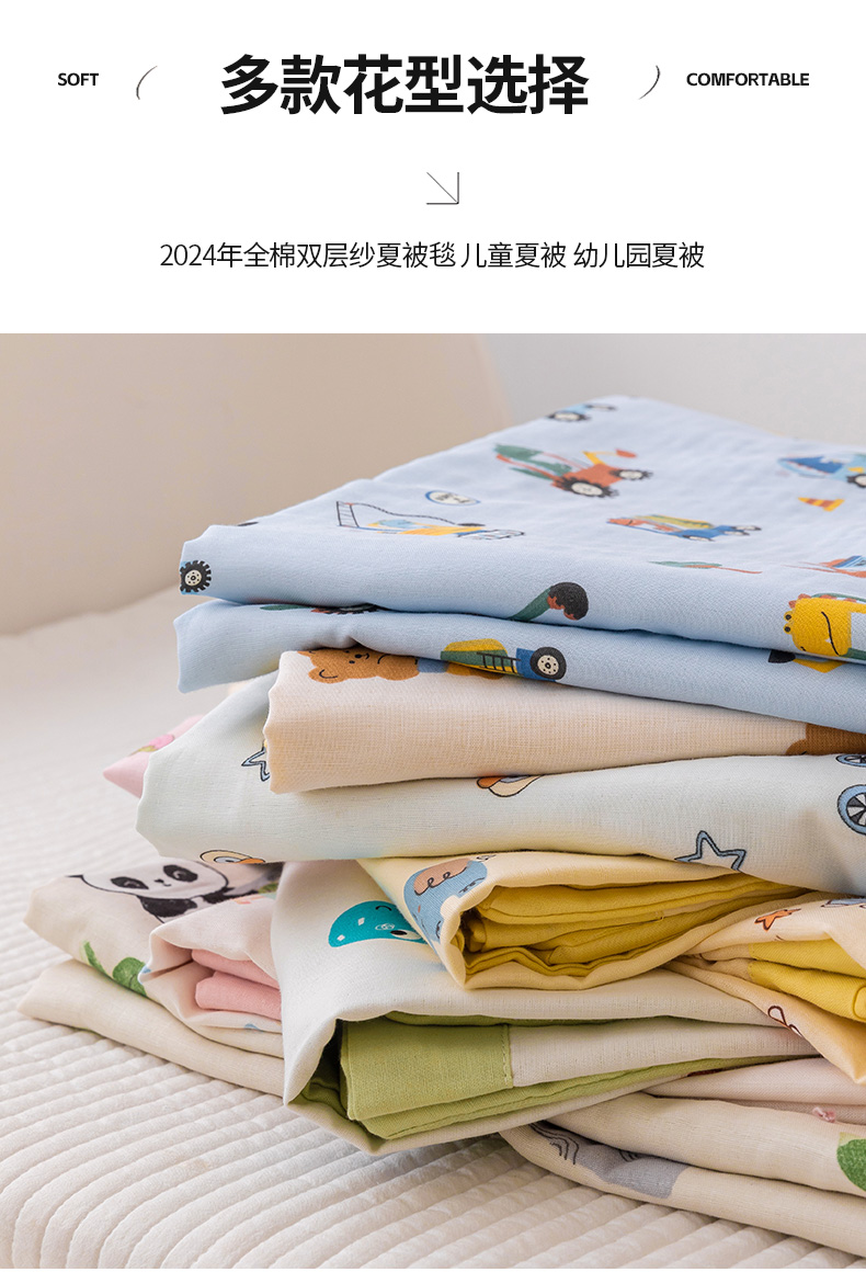 (总)嗨生活 2025新款全棉双层纱豆豆被 儿童被 春秋被 冬被 幼儿园被子,草莓兔兔,花丛小兔,米菲兔,汽车乐园,挖机恐龙,玩具屋,小海豚,熊猫盼盼