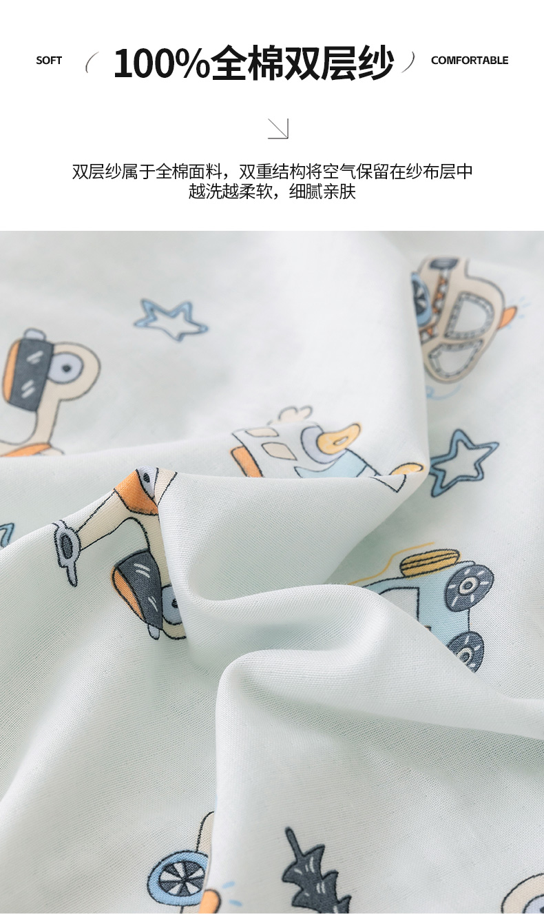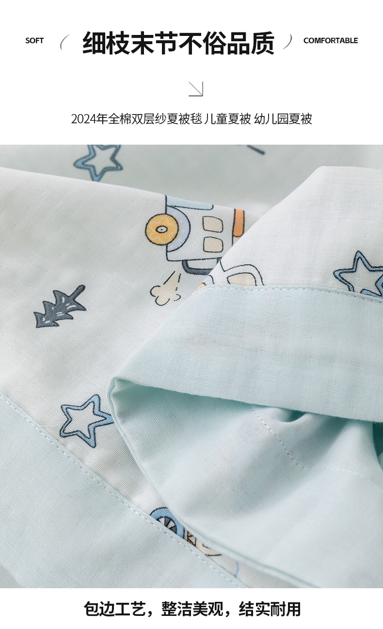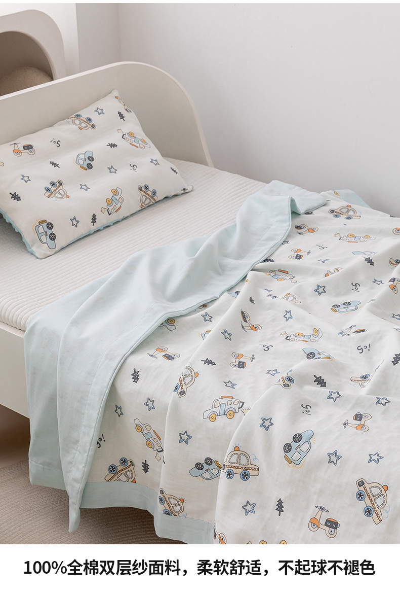 商品名称:嗨生活 2025新款全棉双层纱夏被毯儿童夏被幼儿园夏被 汽车乐园