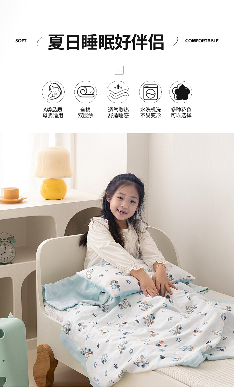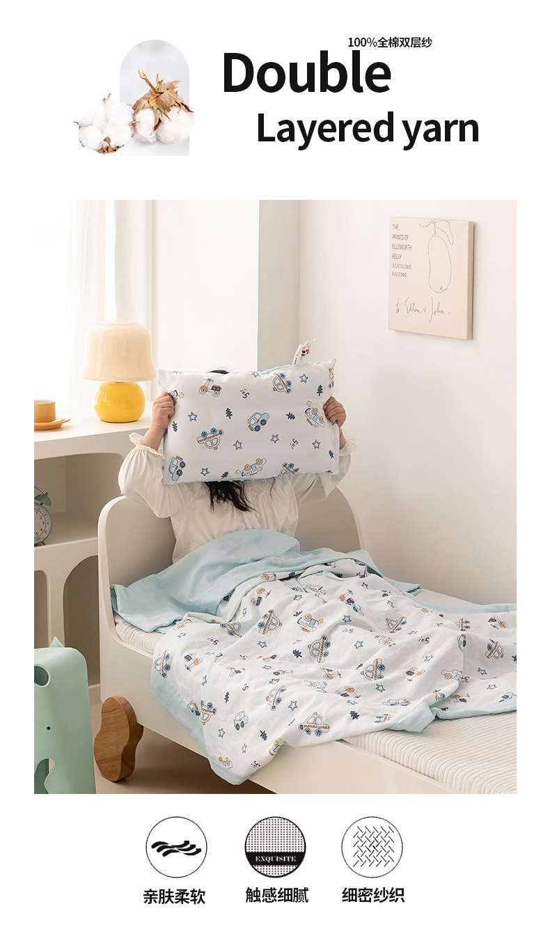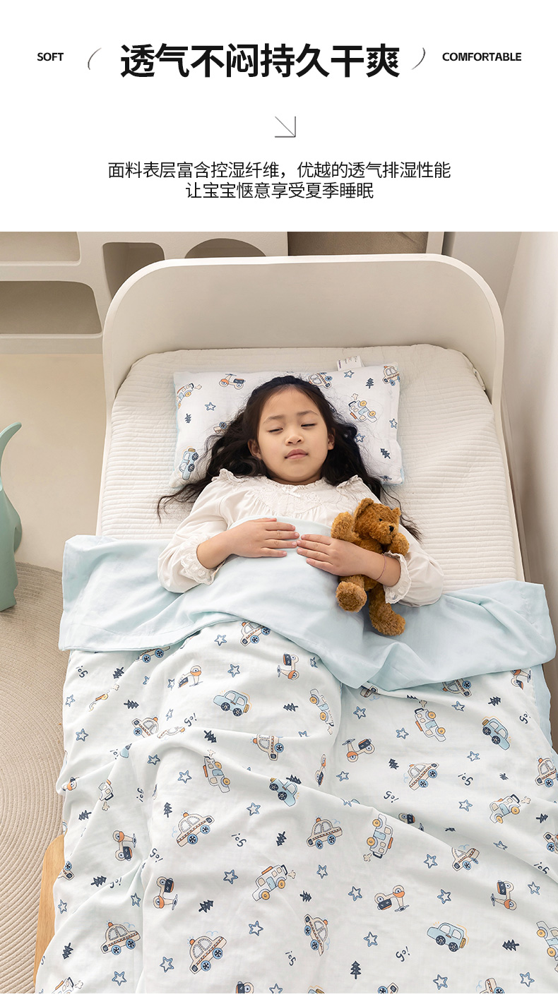 商品名称:嗨生活 2025新款全棉双层纱夏被毯儿童夏被幼儿园夏被 汽车乐园