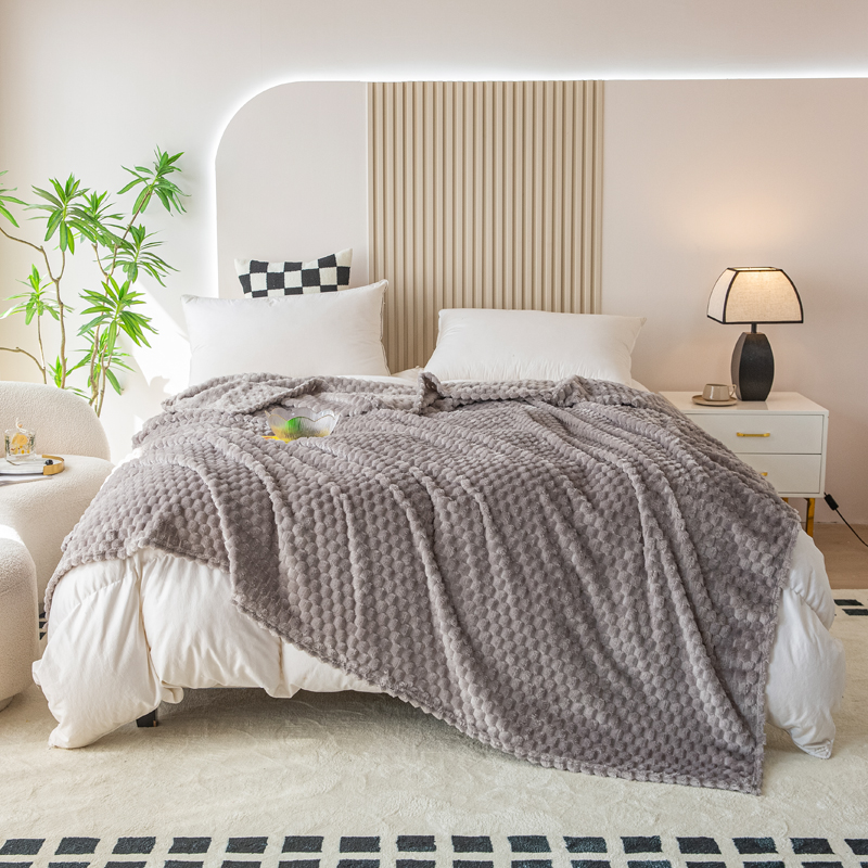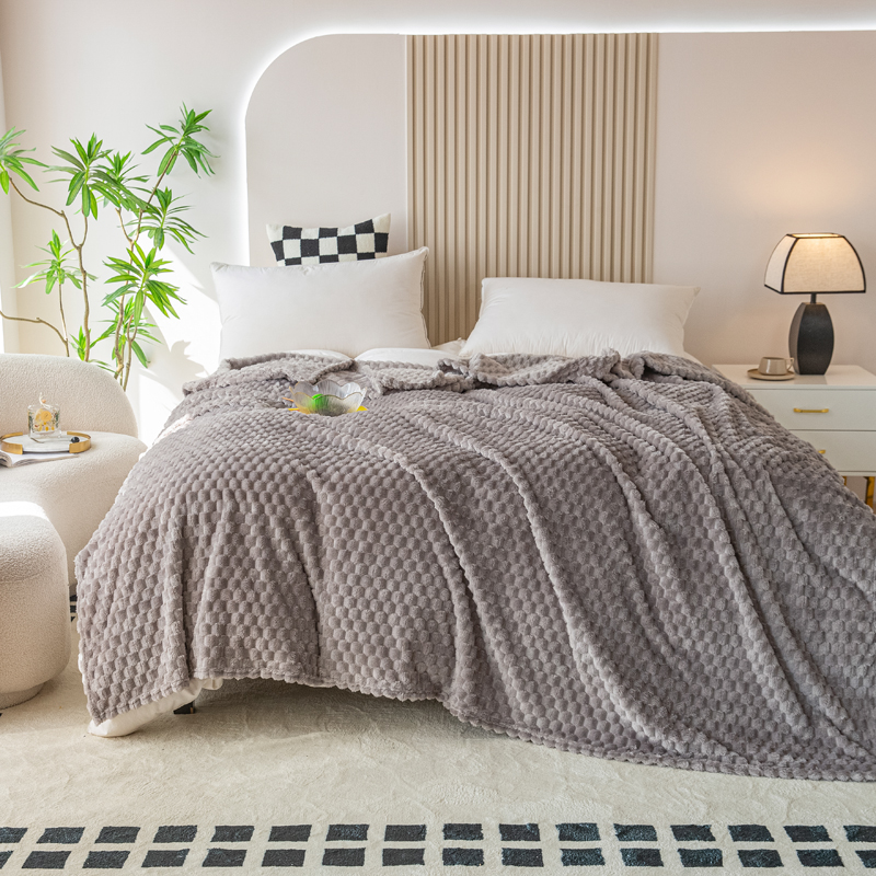 商品名称:卡琪曼 2025新款高克重金龟绒牛奶绒毛毯毯子 浅灰