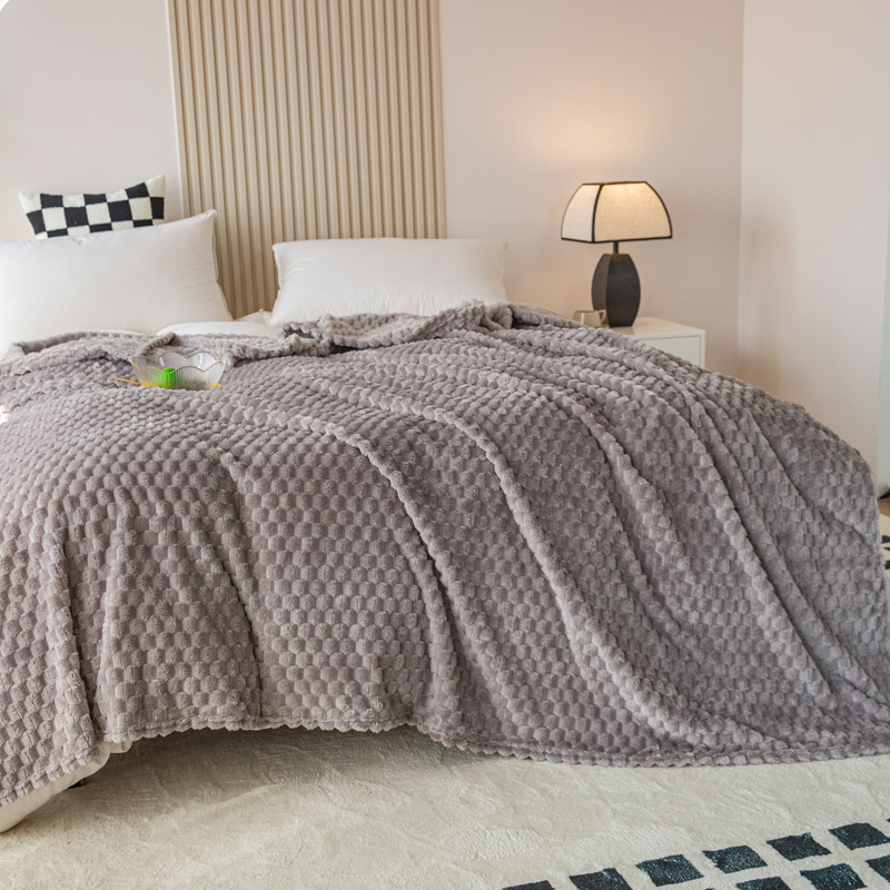 (总)卡琪曼 2025新款阳离子提花羊羔绒毛毯盖毯毯子,军绿,粉色,米白,浅灰,浅紫色,深灰,驼色,雾蓝