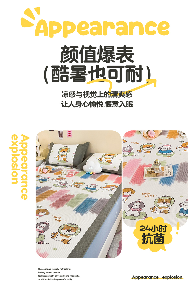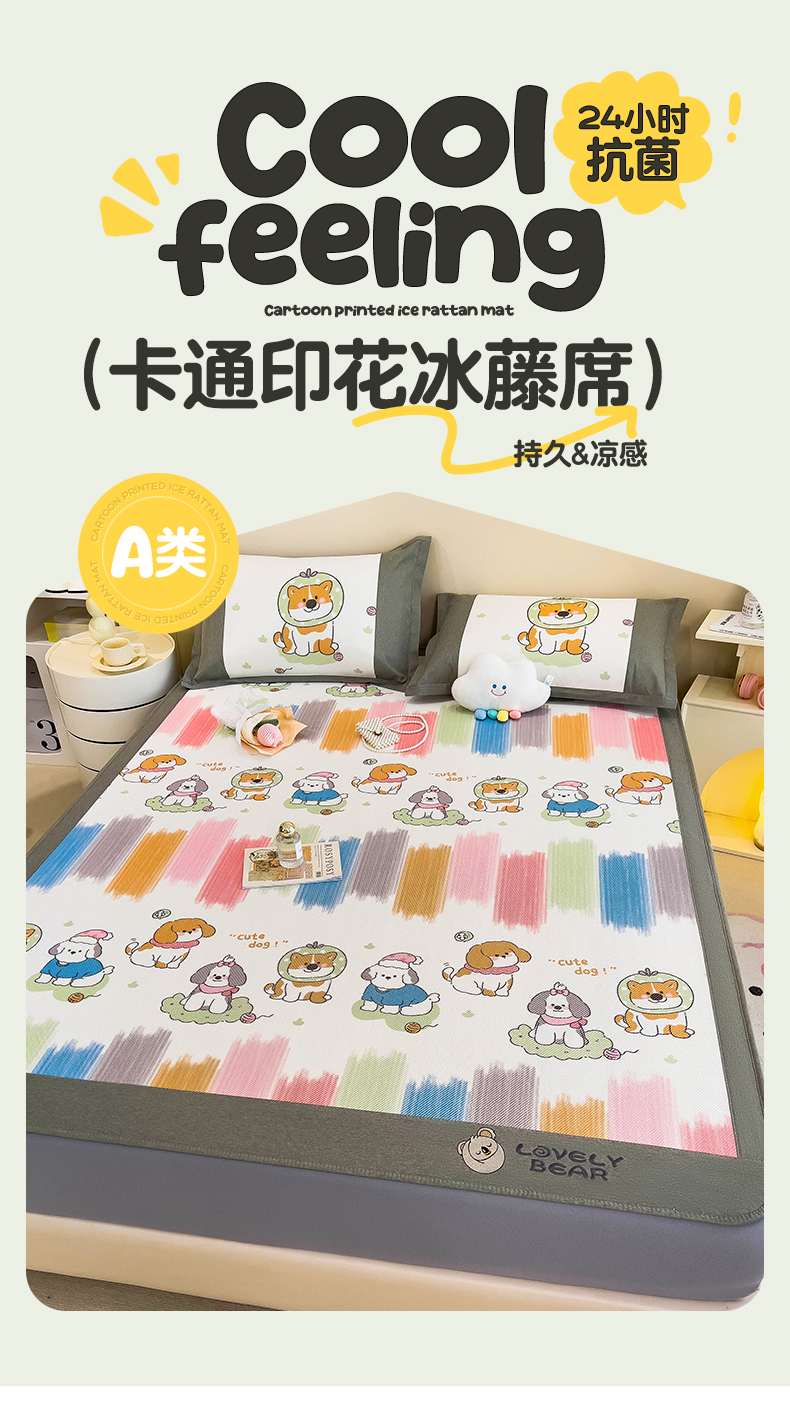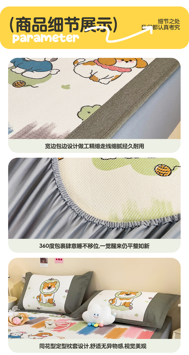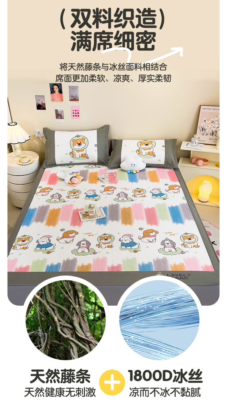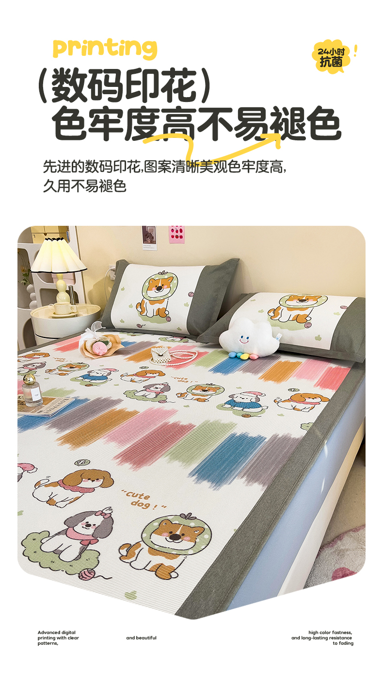 当前位置: 91家纺网 > 商品网购 > 床上用品 > 凉席 > 其他凉席 > 全季家居 2024新款A类抗菌数码印花冰藤席三件套 床笠款-狗狗家族