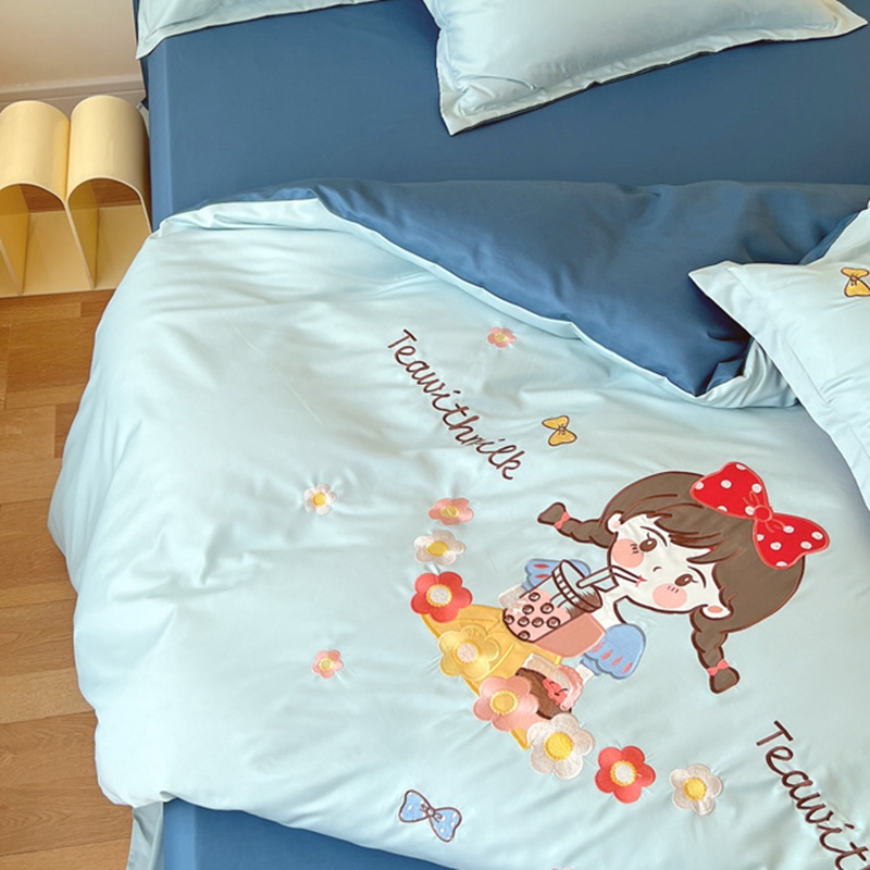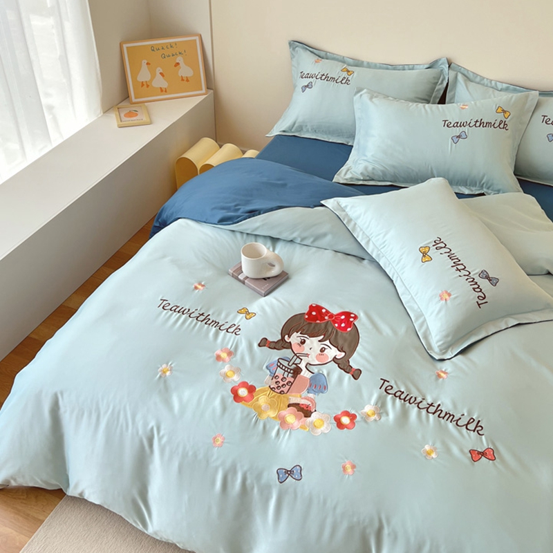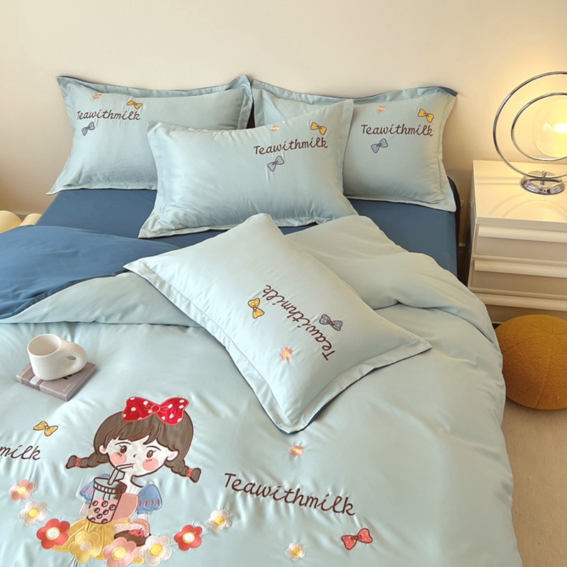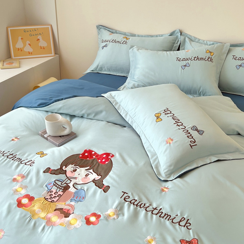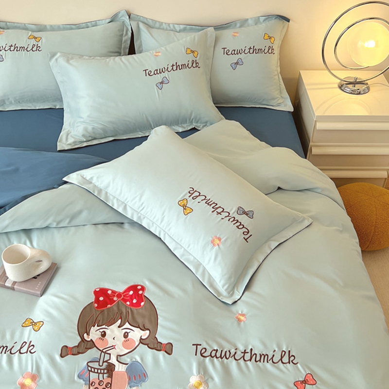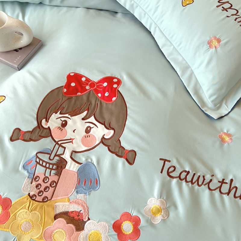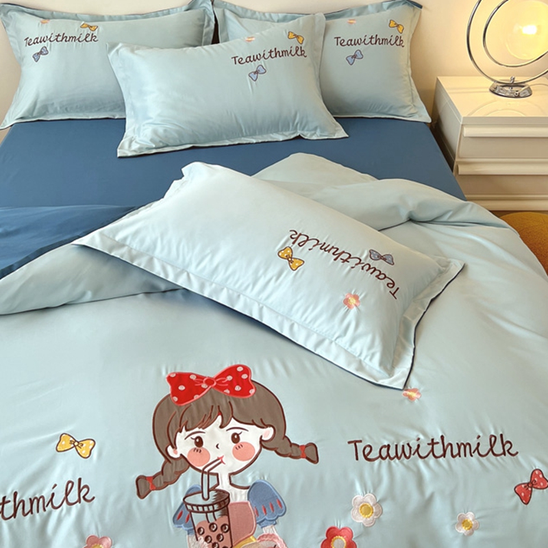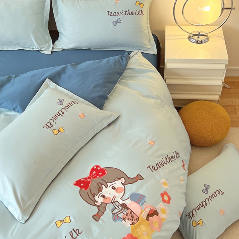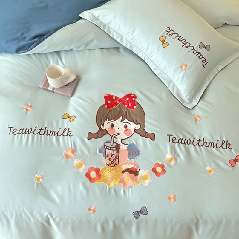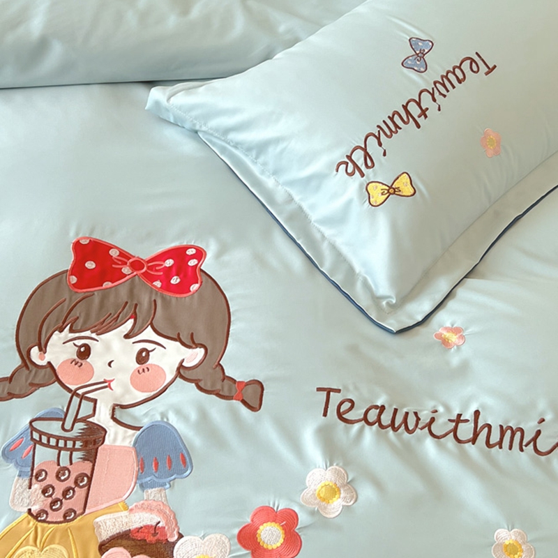 凡客家居 2024新款水洗真丝绣花四件套 小女孩