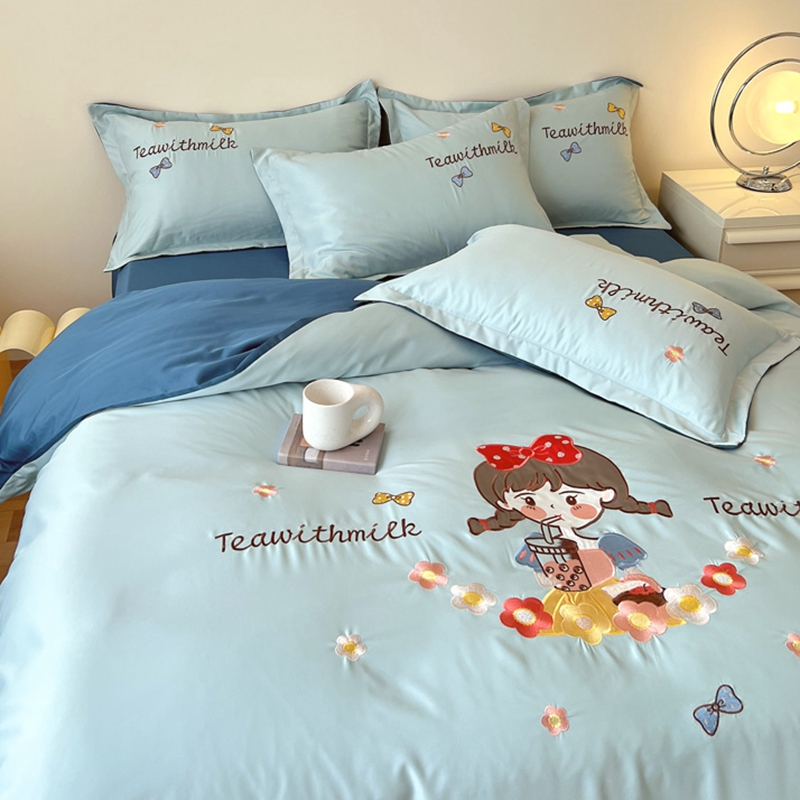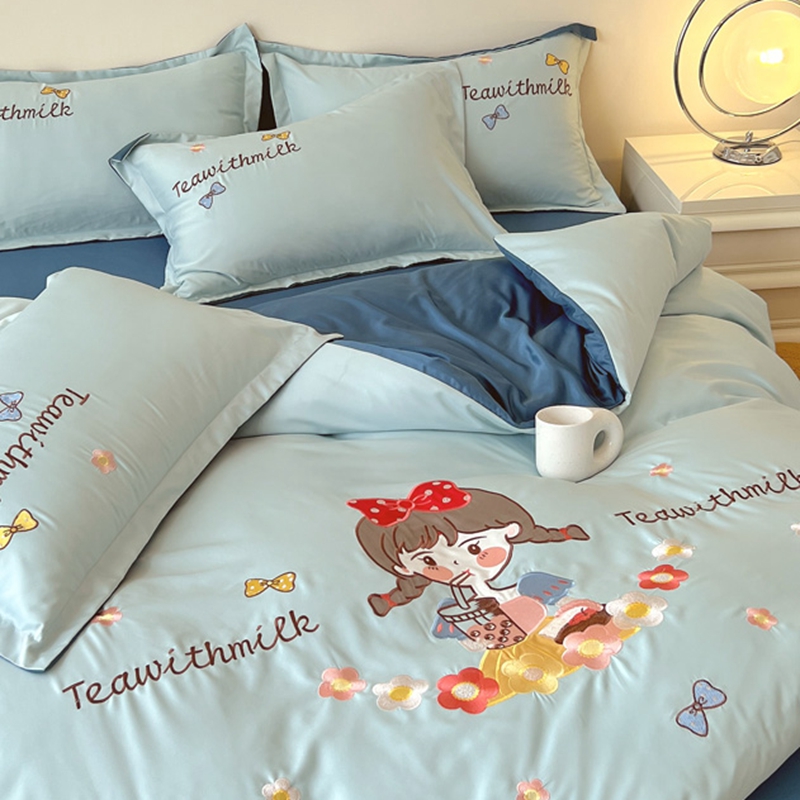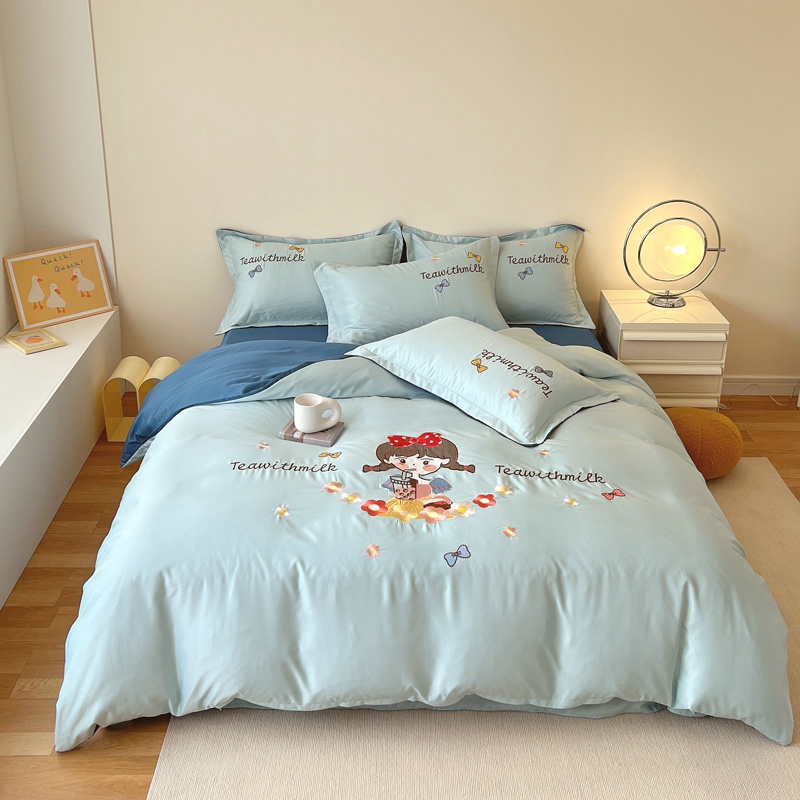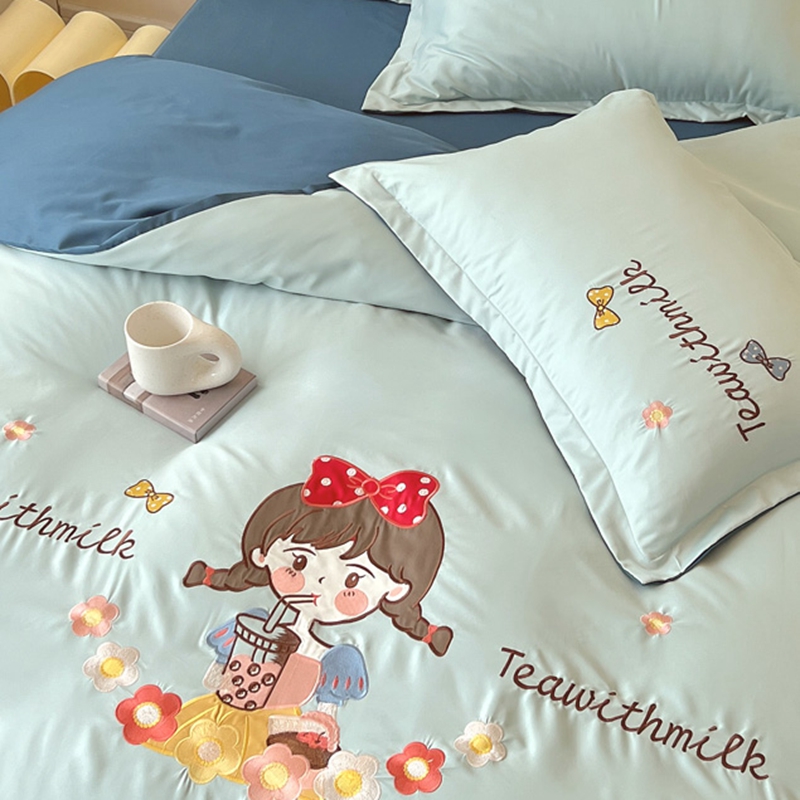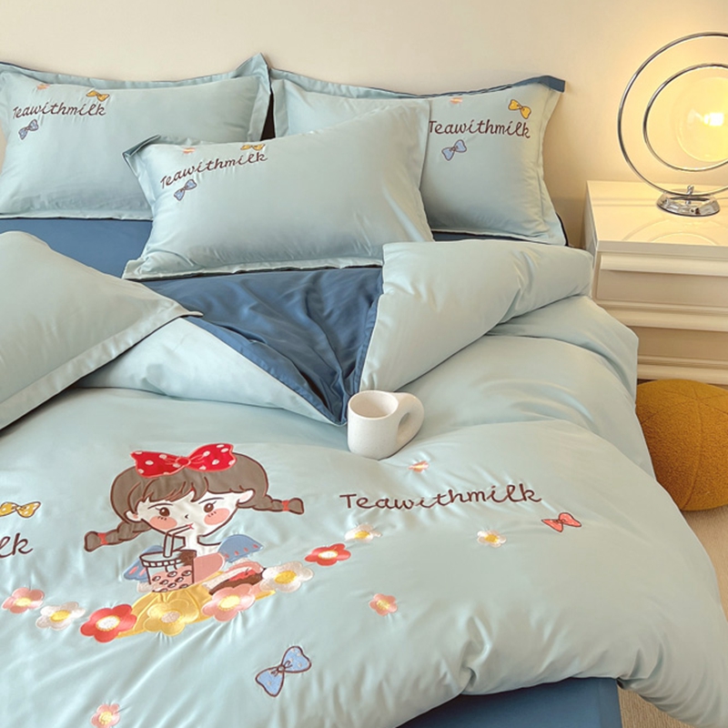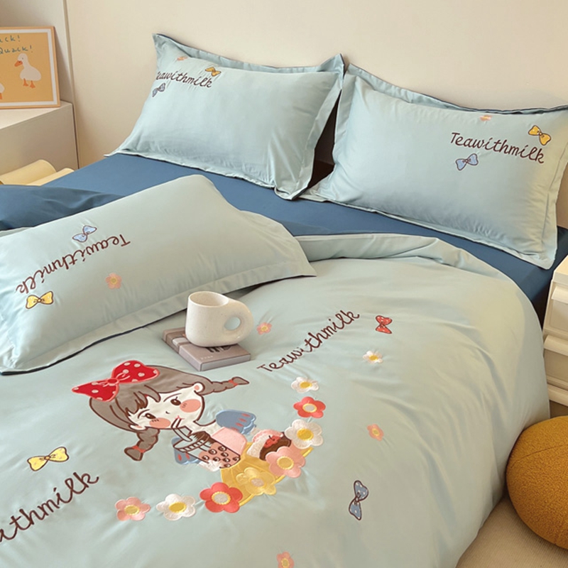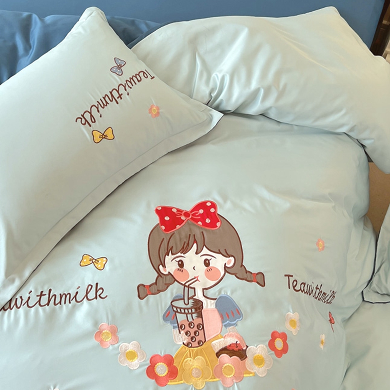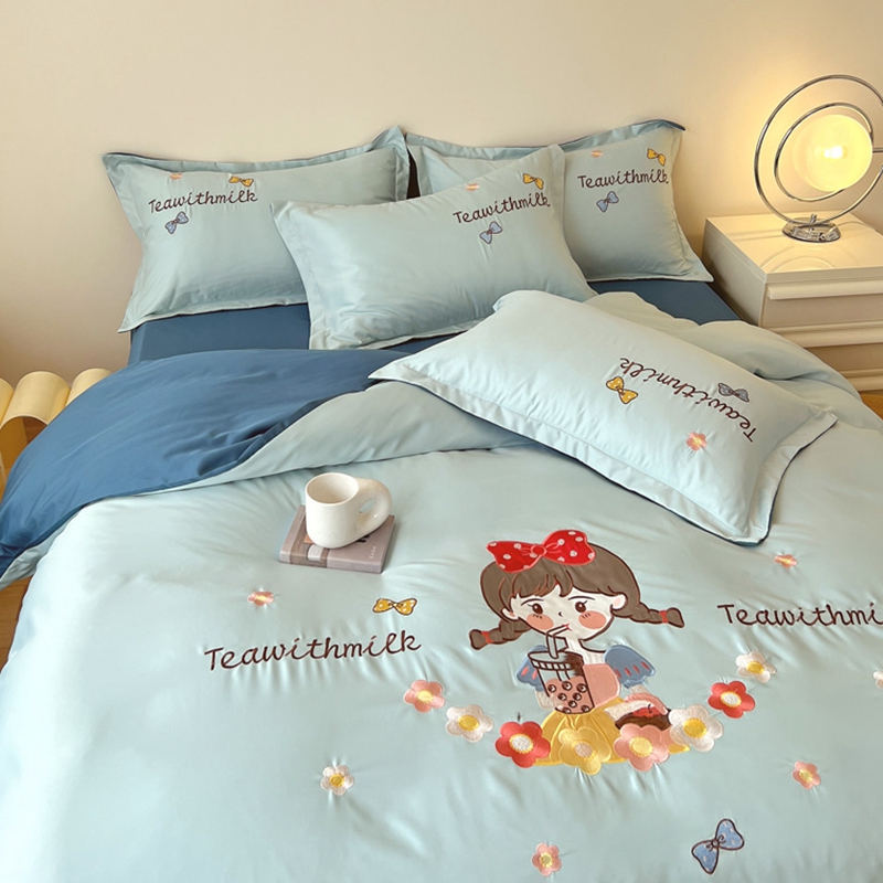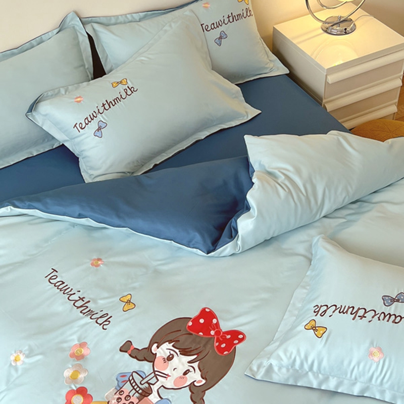 凡客家居 2024新款水洗真丝绣花四件套 小女孩