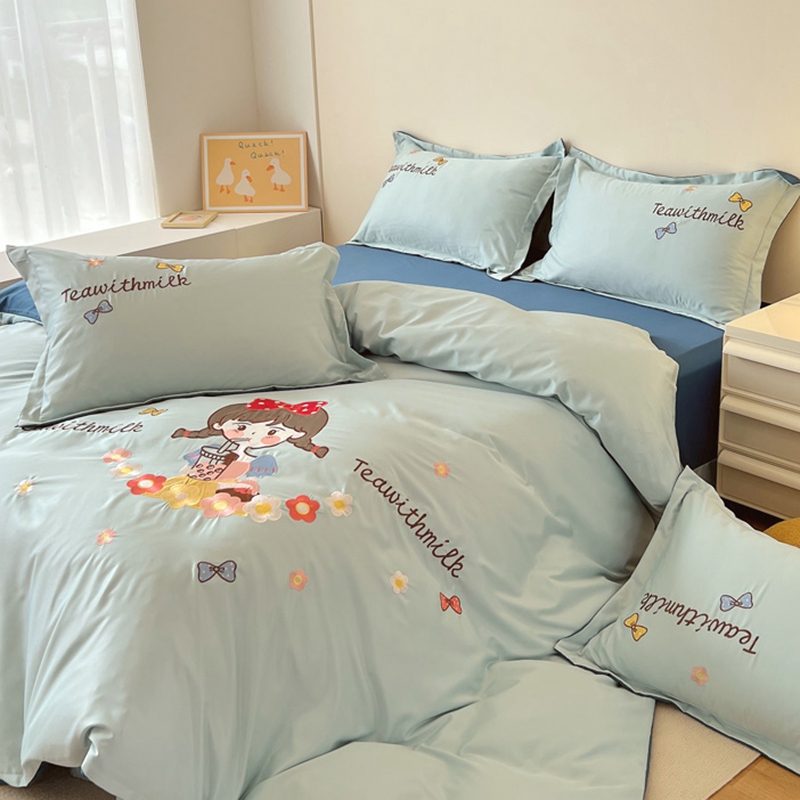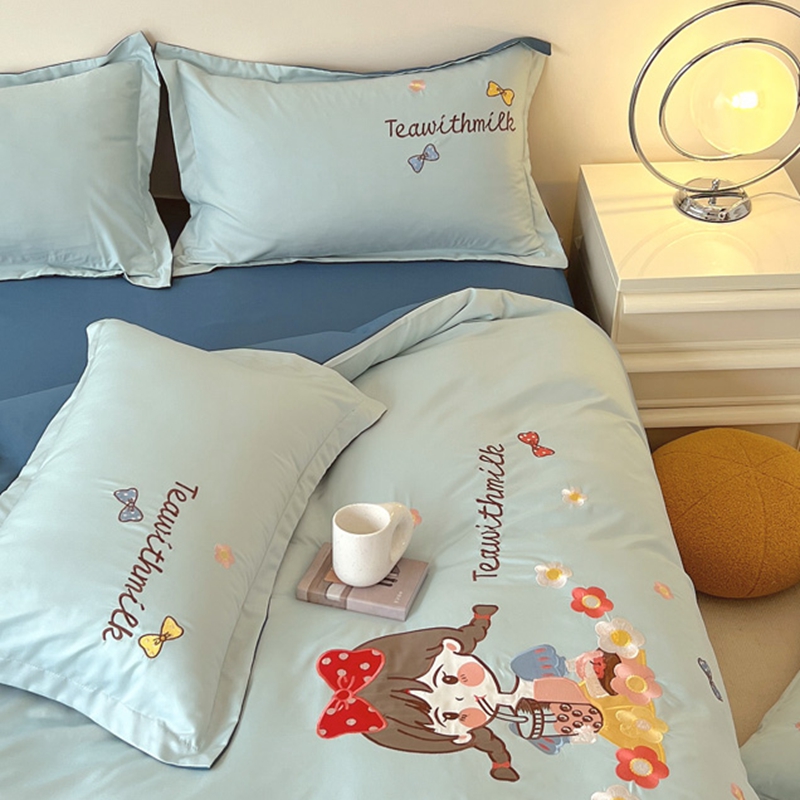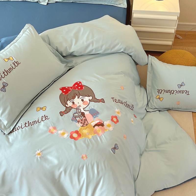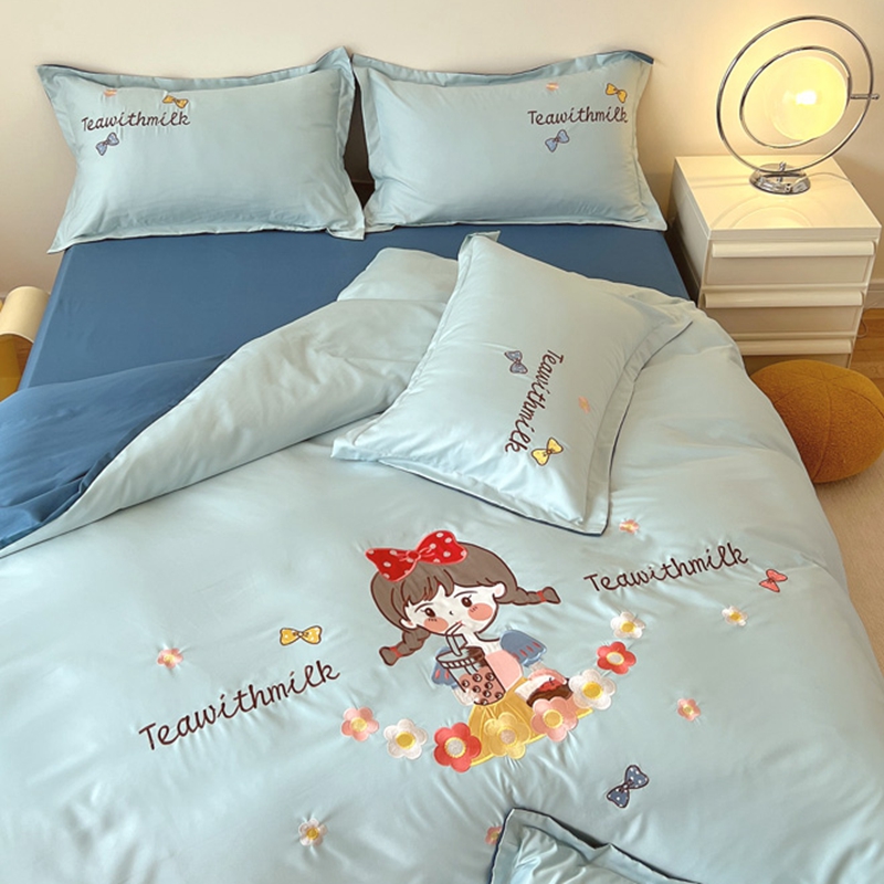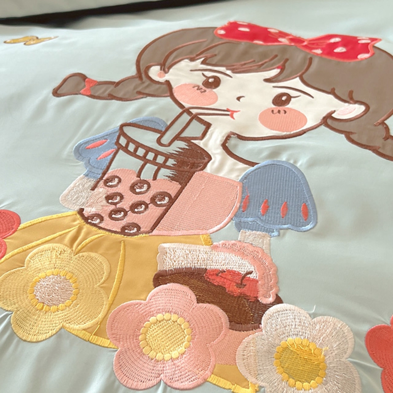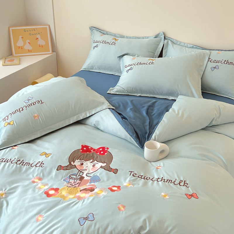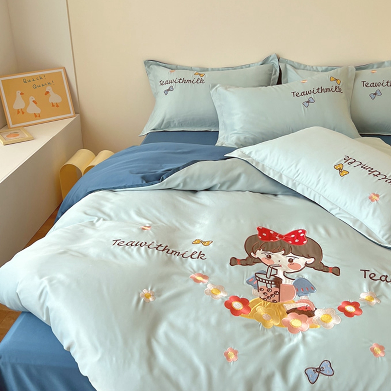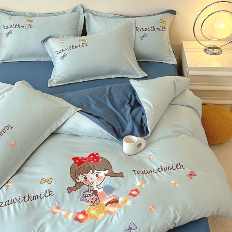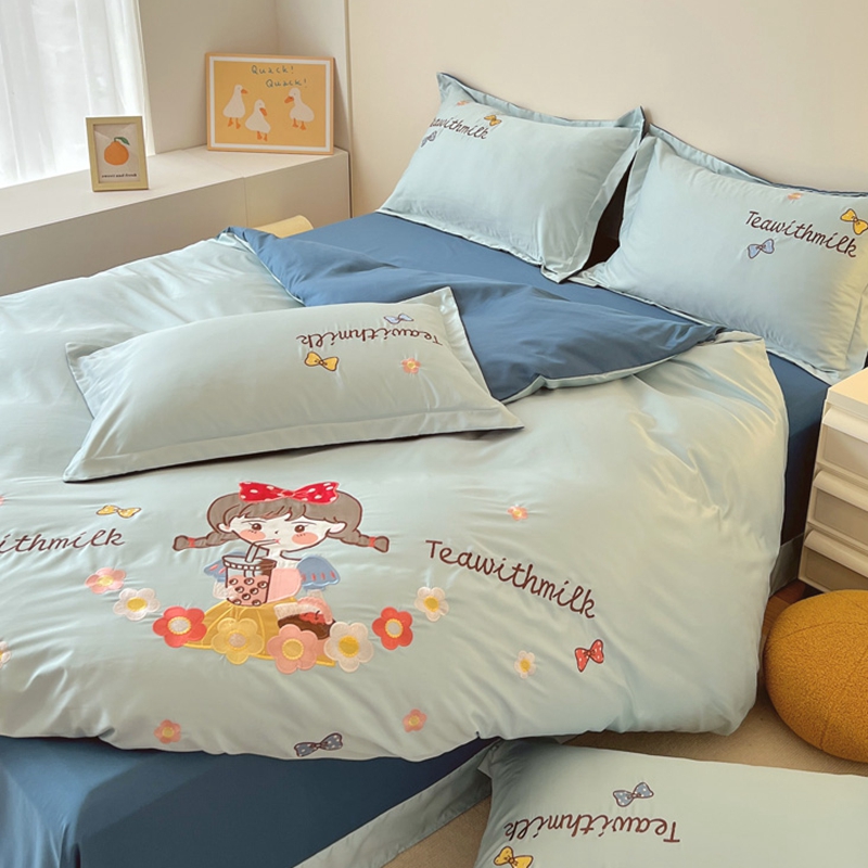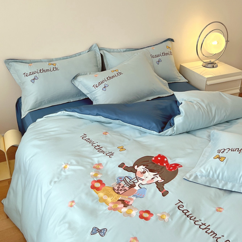 凡客家居 2024新款水洗真丝绣花四件套 小女孩