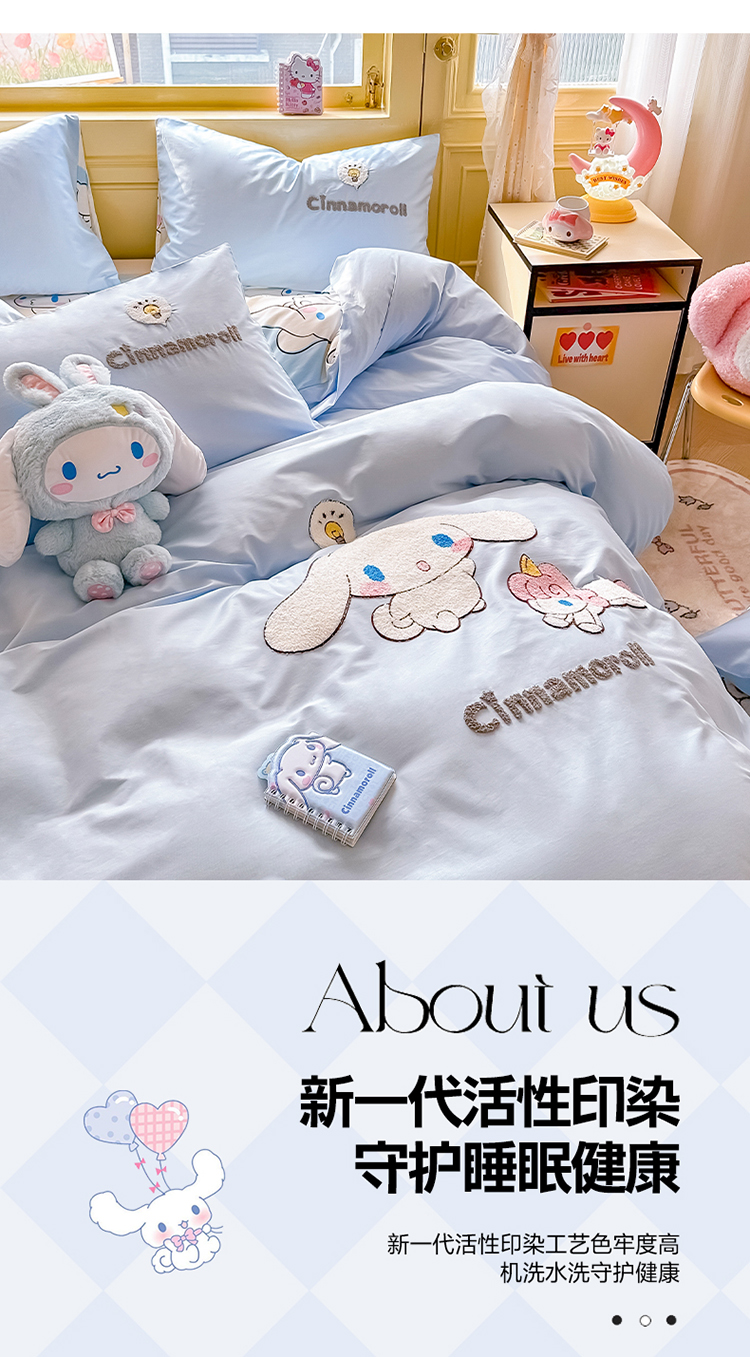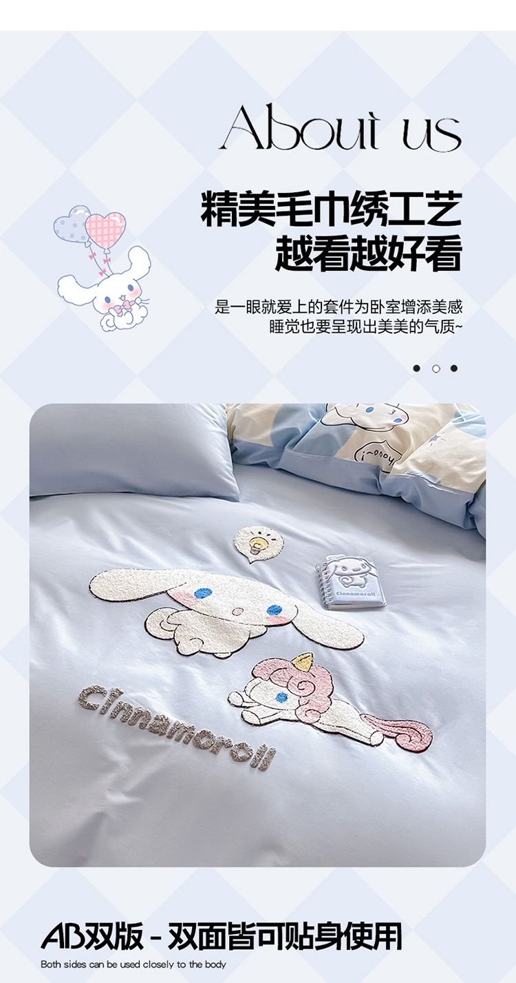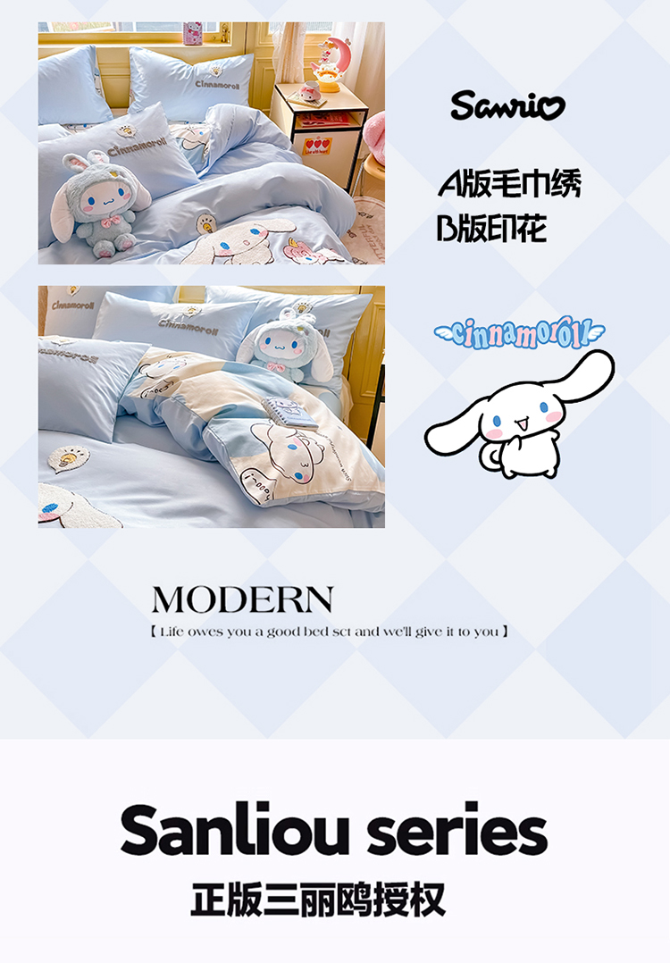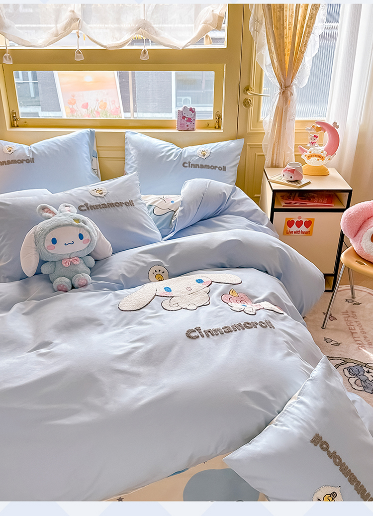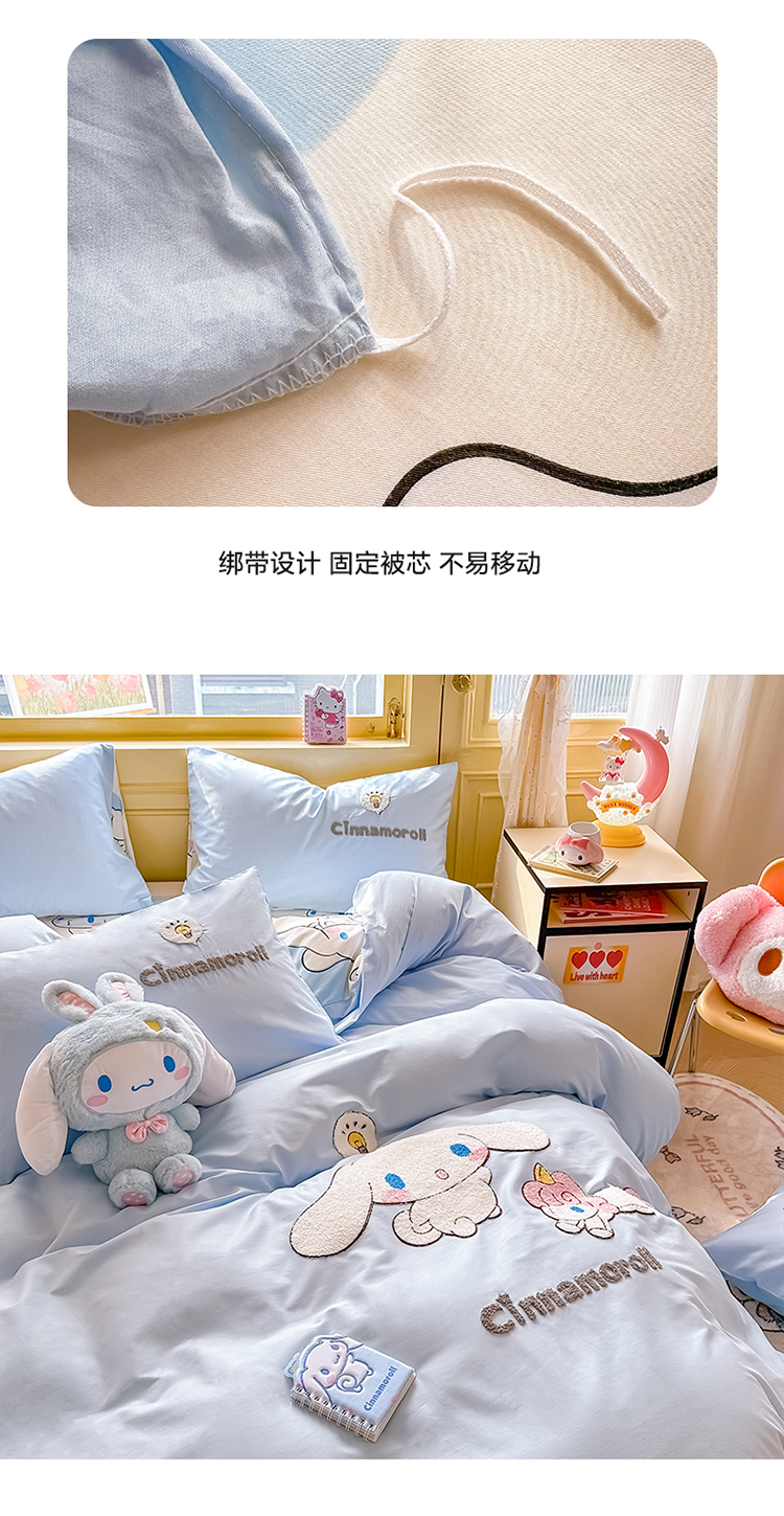 当前位置: 91家纺网 > 商品网购 > 床品套件 > 四件套 > 毛巾绣四件套 > 沐辰家居 2024新款毛巾绣正版授权三丽鸥系列 绣花款-快乐云朵狗-浅蓝