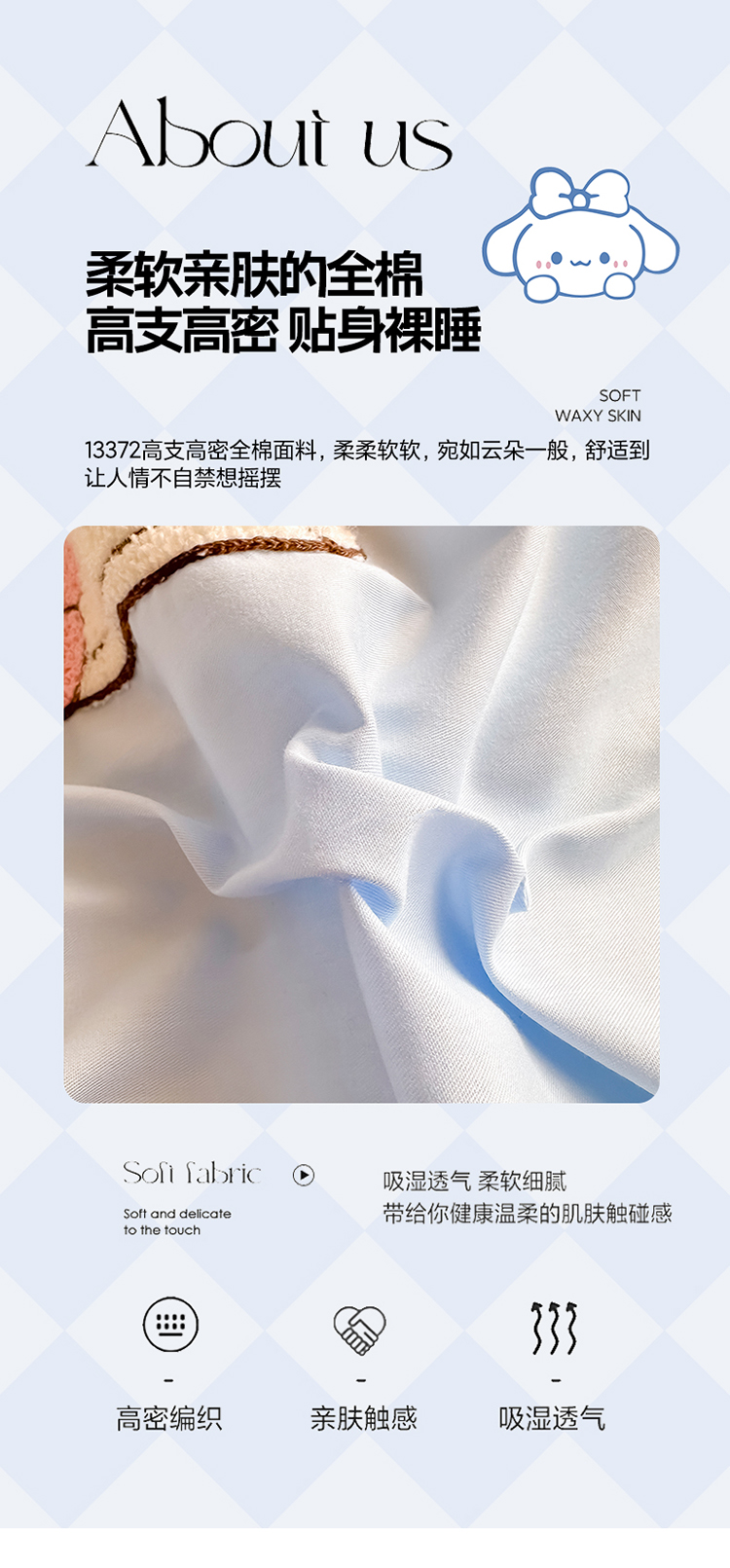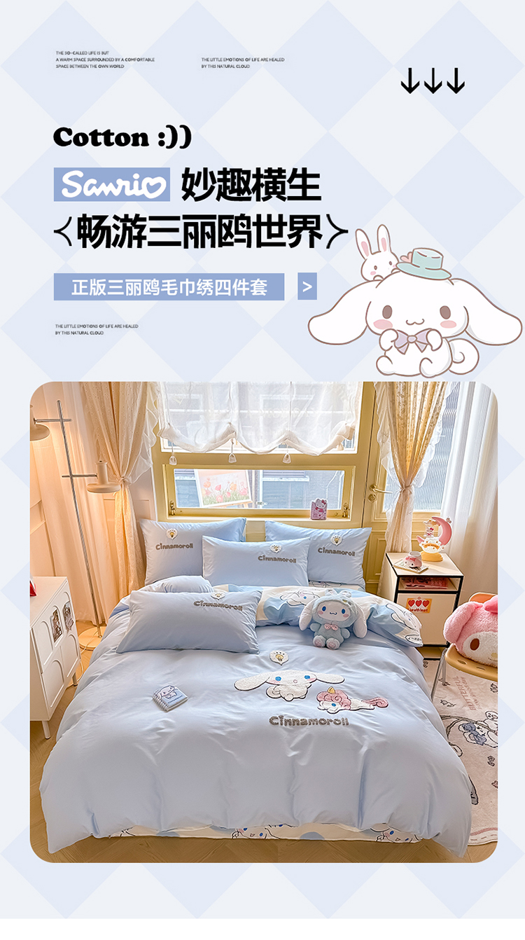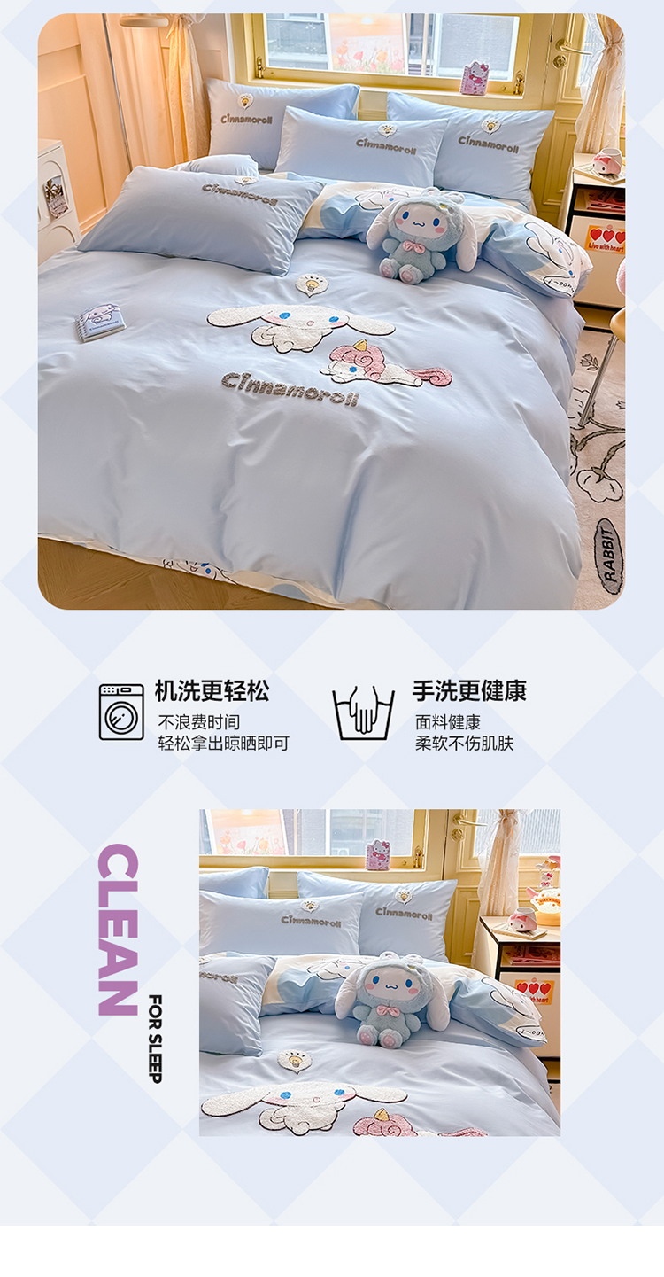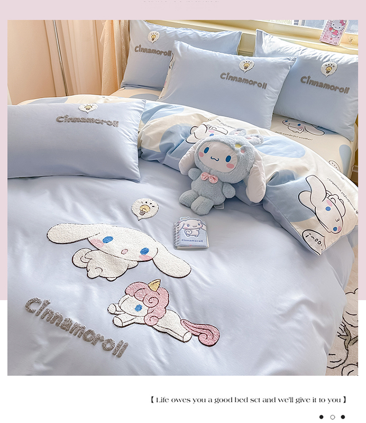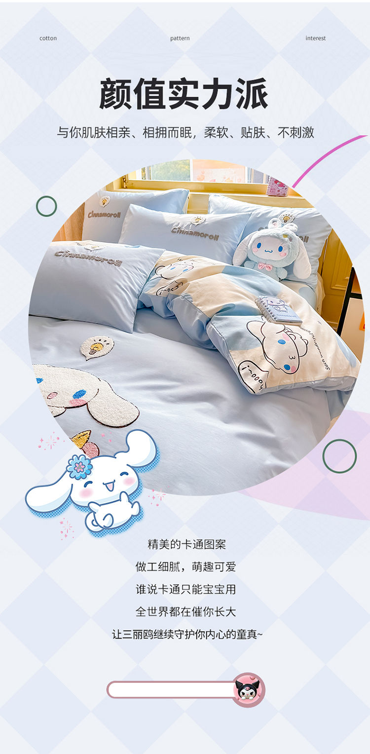 当前位置: 91家纺网 > 商品网购 > 床品套件 > 四件套 > 毛巾绣四件套 > 沐辰家居 2024新款毛巾绣正版授权三丽鸥系列 绣花款-快乐云朵狗-浅蓝