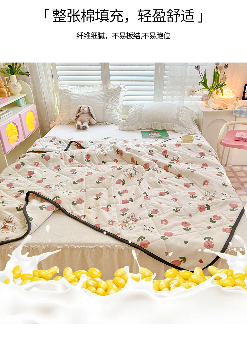 商品名称:琪格格纺织 2024新款A类卡通印花清新大豆针织夏被 200*230cm-夏被 针织被-郁金香兔