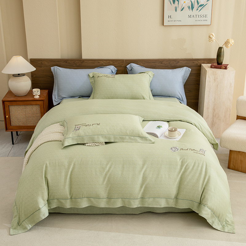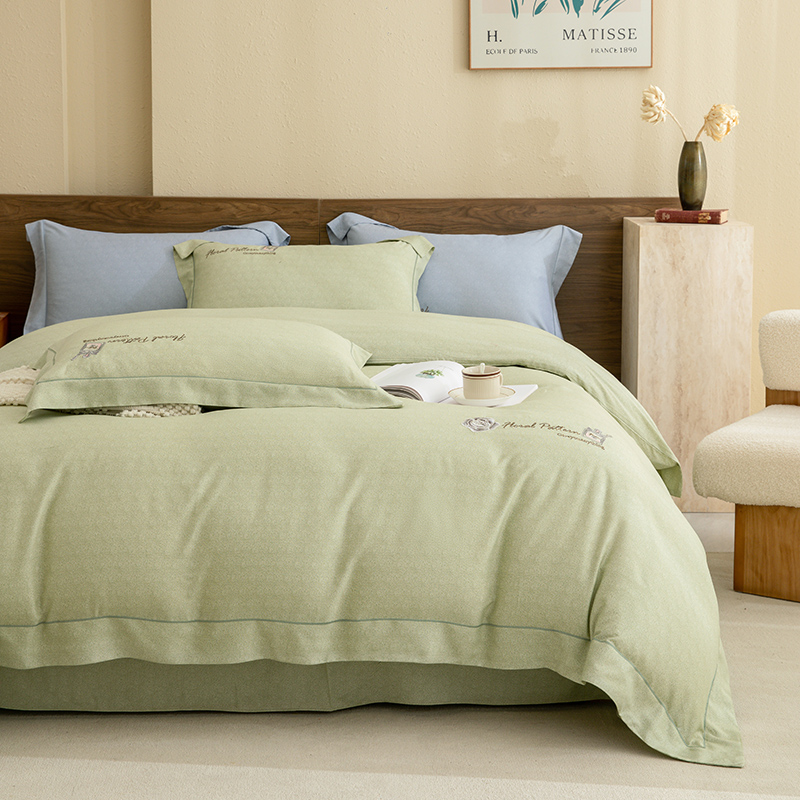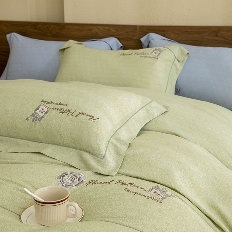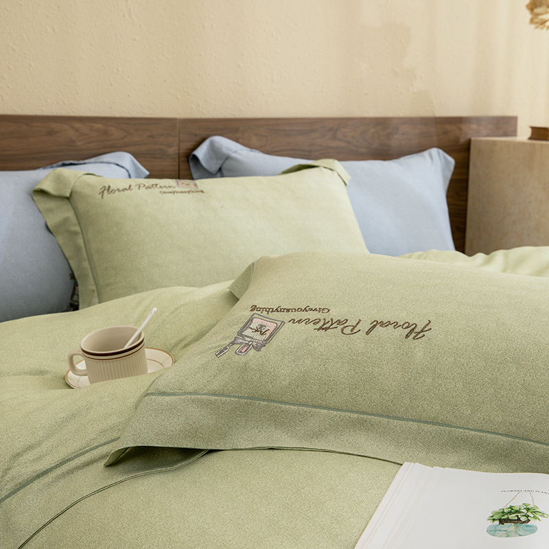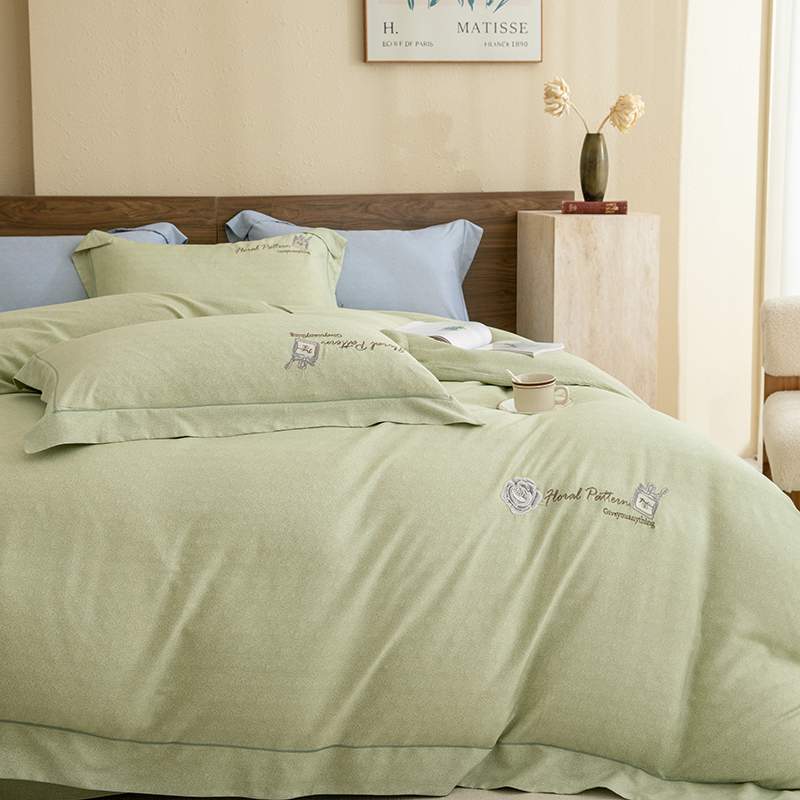 (总)绒博士 2025新款270克牛奶绒双拼角刺绣宽边款四件套--维也纳系列,维也纳-粉豆沙,维也纳-果绿,维也纳-浅咖,维也纳-浅蓝