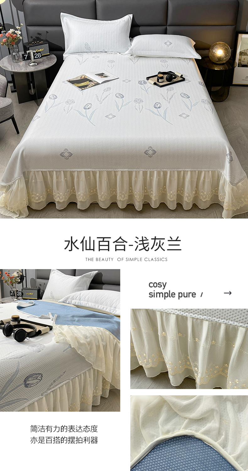 恒爱2024新款冰感豆豆床单款凉席 水仙百合-浅灰兰