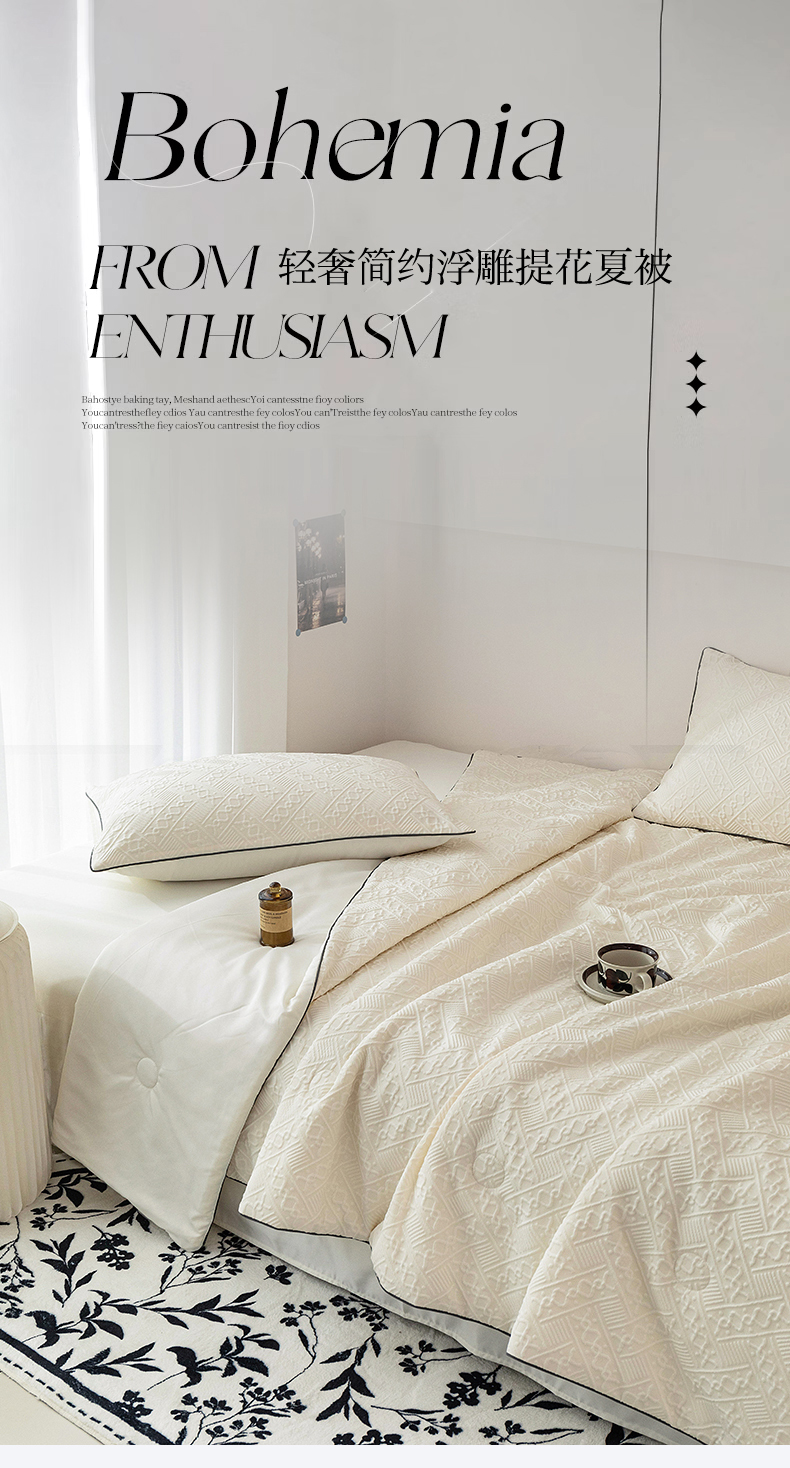 倾慕2024新款浮雕提花夏被 伊美-米白