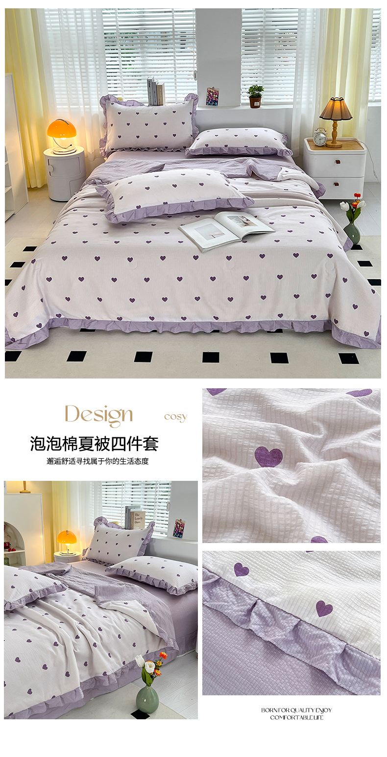 商品名称:富之航 2024新款时尚舒适泡泡棉夏被四件套紫爱心