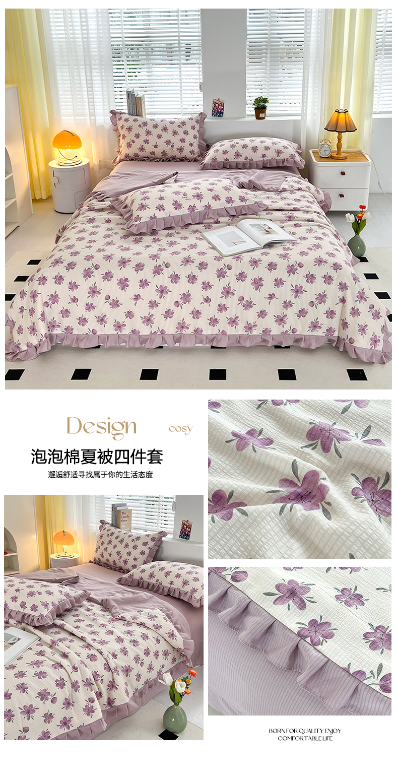 商品名称:富之航 2024新款时尚舒适泡泡棉夏被四件套小苍兰