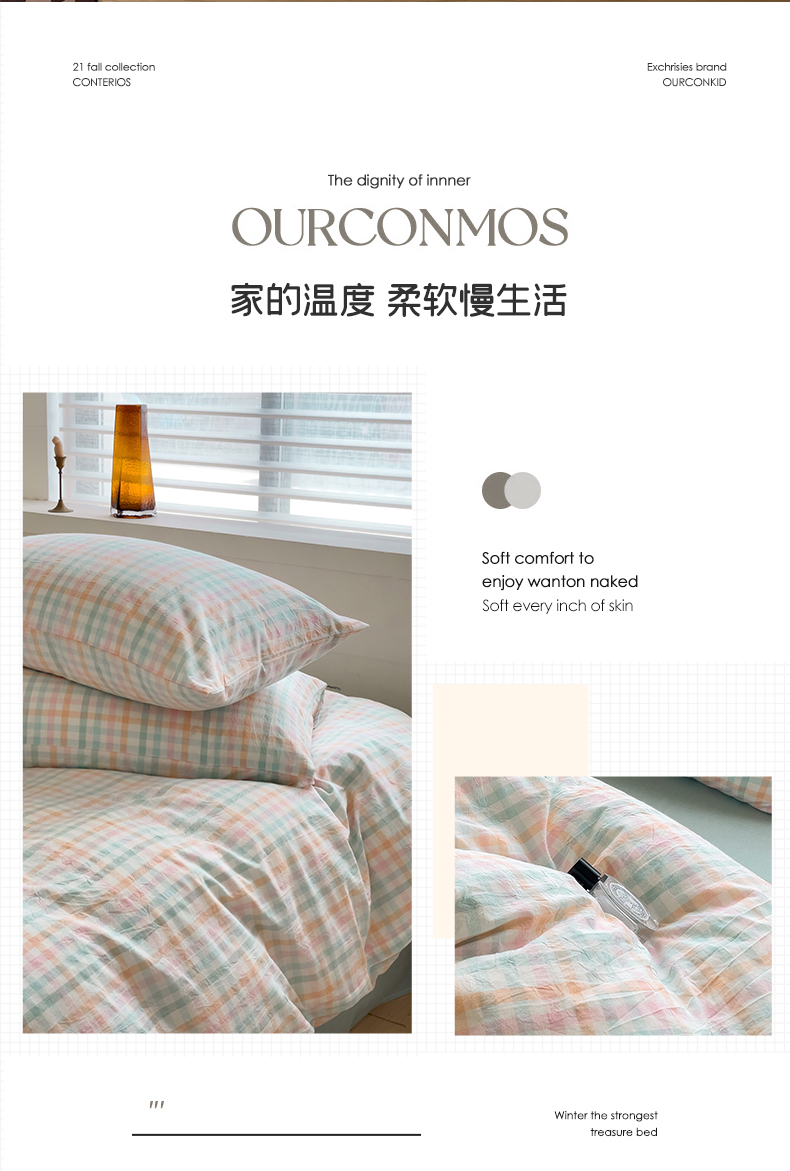 当前位置: 91家纺网 > 商品网购 > 床品套件 > 四件套 > 全棉普通四件套 > 大柏树 2025新款A类色织全棉水洗棉单品系列-四件套 小冰激凌